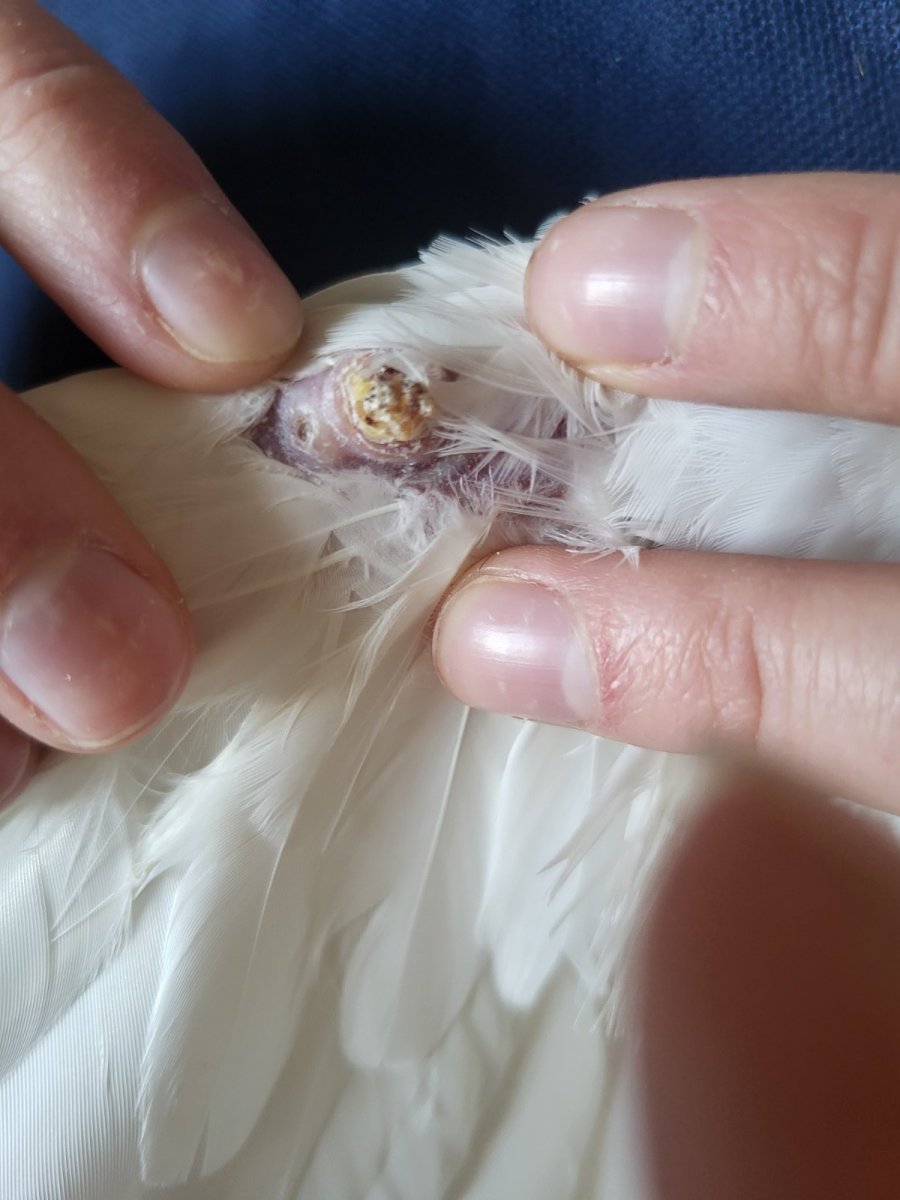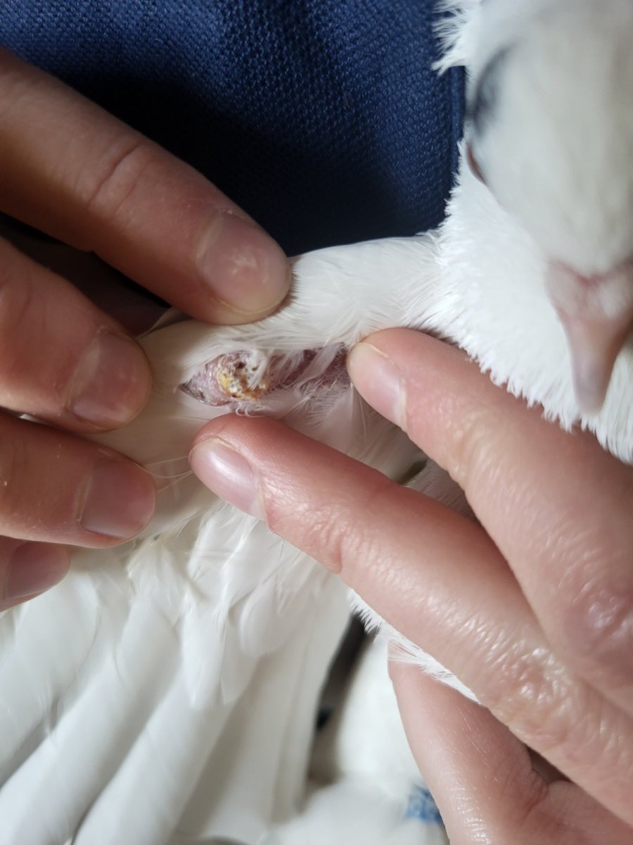 Доброго времяни суток. На днях заметила, что моя домашняя голубка перестала летать, сидит в основном, дремлет, мало двигается. Аппетит хороший. Помет, в принципе, тоже не плохой. Горлышко чистое, наростов не обнаружено. Летать может, но слабо, только если подкинуть её. После того, как полежит, встаёт не резво, будто с трудом. Передвигается медленно Предположительно такое состояние у неё началось больше недели назад. На суставе крыла обнаружила такую засохшую шишку. Так же показались суставы лапок чуть увеличенны в размерах. Каждую вторую - третью неделю курсом 7 дней даю ей витамины (фото прикрепила), тк она пару недель назад выстдивала яйца, но они были пустые. Последнее яйцо было с жёлтом, но оно было обнаружено уже разбитым на полу. Живёт она на застеклённом балконе с самцом, места им там хватает, чтоб двигаться. Подскажите пожалуйста, что это может быть? Ушиб? Проблемы с суставами? Может из-за того, что яйца высиживала иммунитет снизился?