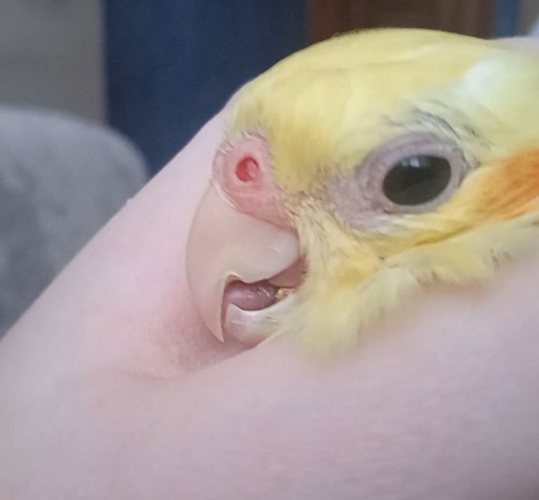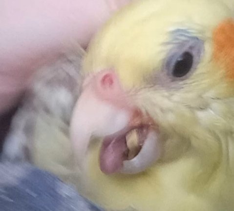 4. Здравствуйте! Совсем недавно начали лечить простуду у кореллы (девочка, 6 лет), возникшую из-за холода дома. Сегодня я заметила, что клюв птички слегка приоткрыт. Присмотрелось... и не совсем понимаю что это может быть: шелуха или какая-нибудь паппилома и нужно бить тревогу? Может быть это и не простуда совсем, а какая-нибудь инфекция... Так же появилось что-то похожее на "заед" с одной стороны клювика. Проблем с едой у птички не возникало сегодня: спокойно есть корм и овощи, пьёт воду.