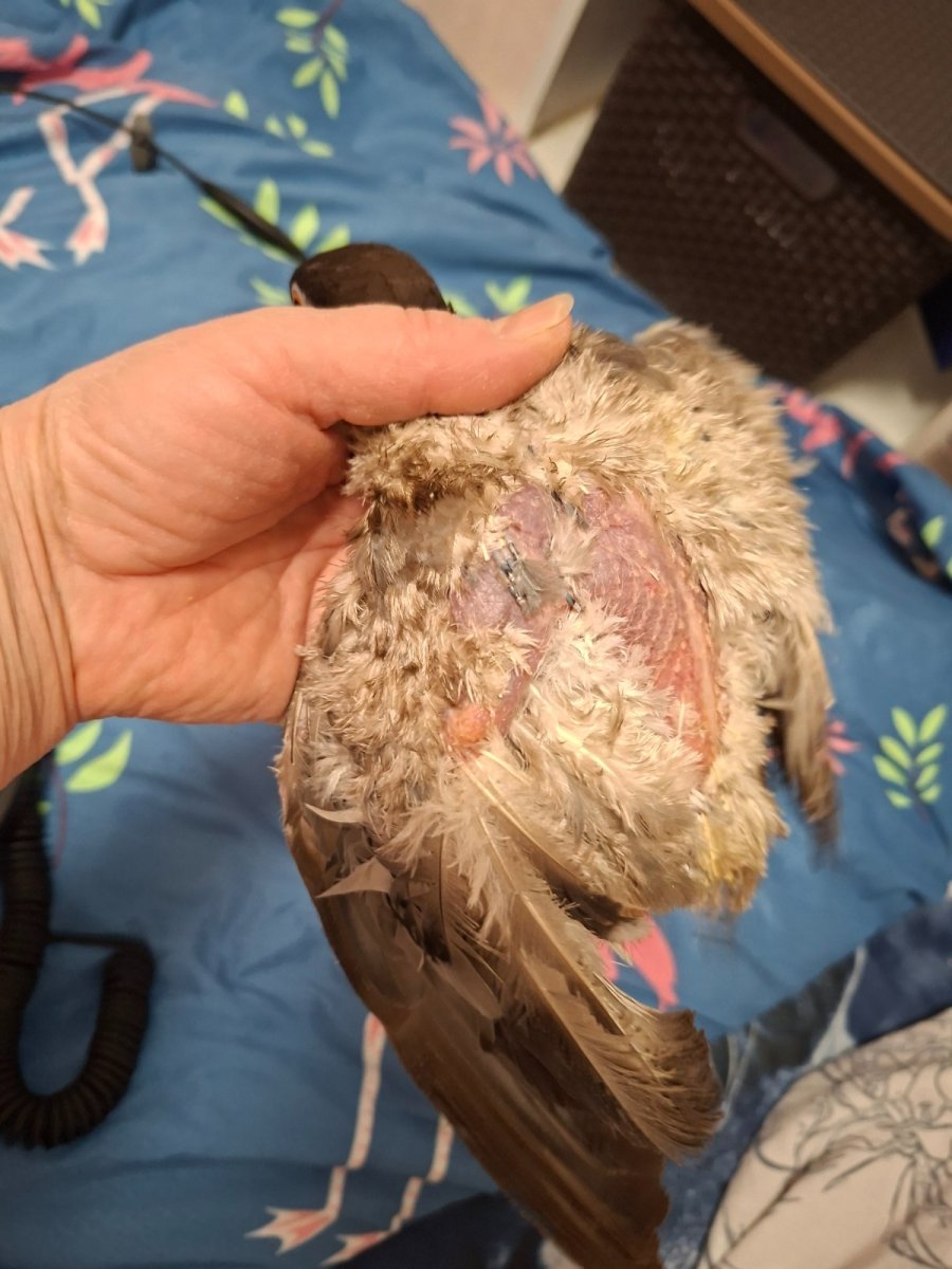Много перьев, не могу добраться до кили А глюконат кальция можно таблетками? А ещё заметила, что она сидит только на плечах и сидит на грелке.