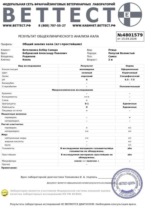 покажите анализы @Zosia https://www.mybirds.ru/forums/profile/4292-zosia/