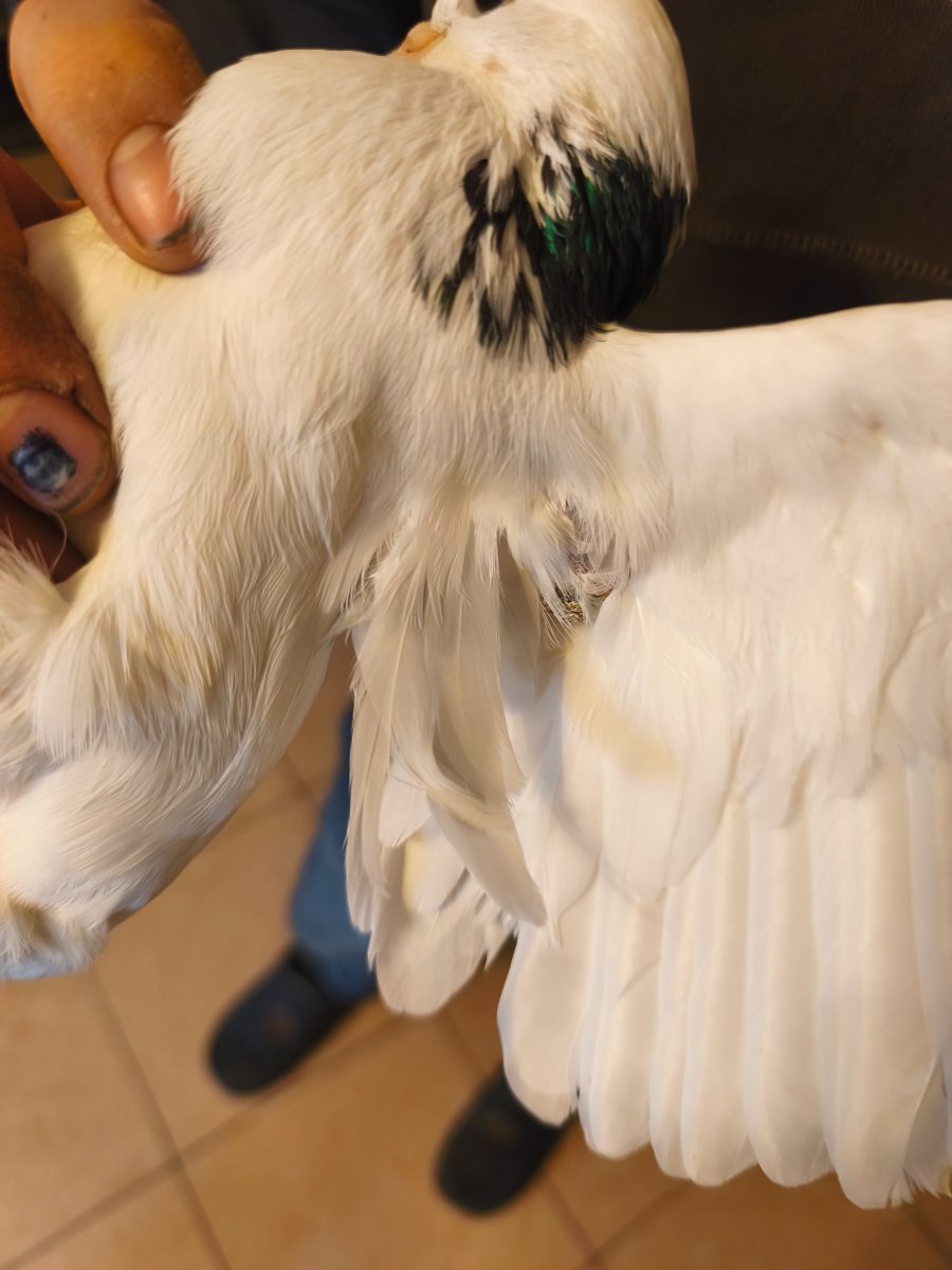 Возле дома найден голодный, помирающий от голода голубь. Взлетает, но не далеко. Поймали его, забрали домой, начали кормить тем зерном, что ест голубь, начал есть отошёл. Все было нормально! Единственное, он весь кишел паразитами в перьях, наверное пероедами. Купили средство, вроде все пропали. Но вдруг ни с того, не с чего на месте сустава крыла появилась шишка. Видимо сустав был травмирован или ещё что! Голубь бегал в подсобке, его не тревожили, когда сидит, то трясется. Ест нормально, крыльями магии, но больным крылом не сильно. В итоге его поймали, подняли крыло, а там на суставе сильный нарост! Что делать, как его лечить? Помогите пожалуйста советом!🙏 Орнитологов специалистов в городе нет!