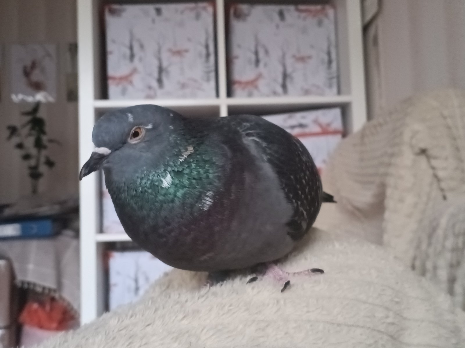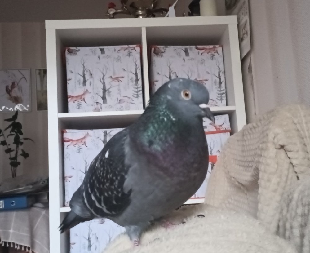 6. Ох...переживаем...вчера Гуляша полетела в первый раз на верхний этаж... Минут 15 там где-то сидела.Потом муж вышел на балкон и она прилетела к нему на плечо и потом в квартиру. К улице интерес не проявляет пока больше. Милуется, сидит на пледе с нами, гурчит и просит чтобы её всё время гладили. Скоро нам переезжать на 15 этаж... А нашу пятиэтажки будут в ближайшие месяцы сносить. На месте нашего дома будет стройка. Страшно подумать, конечно, куда полетят наши дворовые голуби, которые тут живут... Вот и думаем, стоит ли Гуляшу так выпускать с балкона,учитывая такие обстоятельства? Конечно, она прямо ручная... Конечно, мы можем её забрать с собой. Но, там 15 этаж, и скорее всего предстоит еще переезд в неизвестность. Условия содержания явно станут хуже. Возможно клетка с выгулом на час в день, по выходным больше.Она будет одна, а она явно хочет высиживать птенцов. Будет ли это гуманно? Или все-таки пробовать выпускать как-то? Р. S. : хорошо, что вчера не улетела. У нас сегодня снег выпал и жуткий ветер.