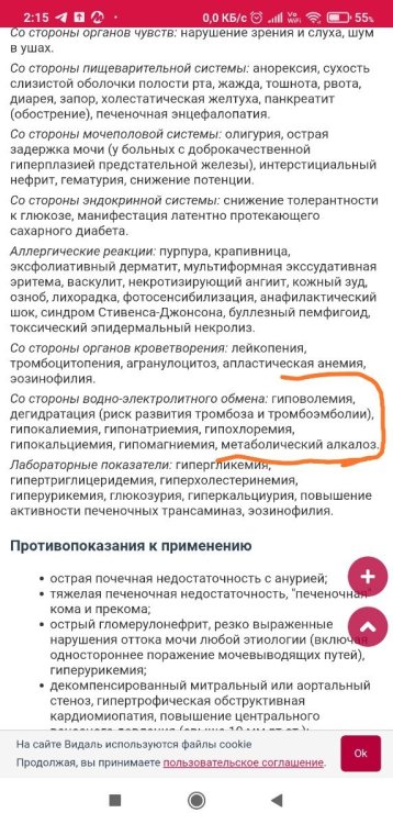 2. @Syringa судороги и проблемы с дыханием были изначально или появились после фуросемида? Если после, то это может быть его побочка. Посмотрите под спойлером. Раствор рингера желательно найти. Физраствор хотя бы дать, не обязательно колоть.