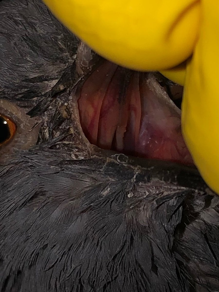 3. Бедная птица 😂 замучила я его с открыванием клюва Все фото - на боковой части какие то белые штуки, это норма? фото 2 - зубчики на глотке - это норма? голубь сам НЕ ЕСТ, немного дерется, крыльями шевелит, зоб вздутый какой то, но переваривание идет. Поэтому кормлю пока сама. Зерно и вода у него в доступе - не подходит читала сегодня о всех рекомендациях дала 1/4 таблетки нистанина, так как он как раз для зоба. Если не верно- поправьте! метронидазол думала давать 1р/день - например утром, а вечером нистатин. Вычитала, что они в дуете нормально. Если не права, прошу поправить Просто Зосе я отправила только рентген и наш диалог был касаемо сустава, я не описала ситуацию с отказом от еды и язвами, которые под вопросом. Но как я поняла, ее назначение лучше начать, когда он хотя бы начнет сам есть