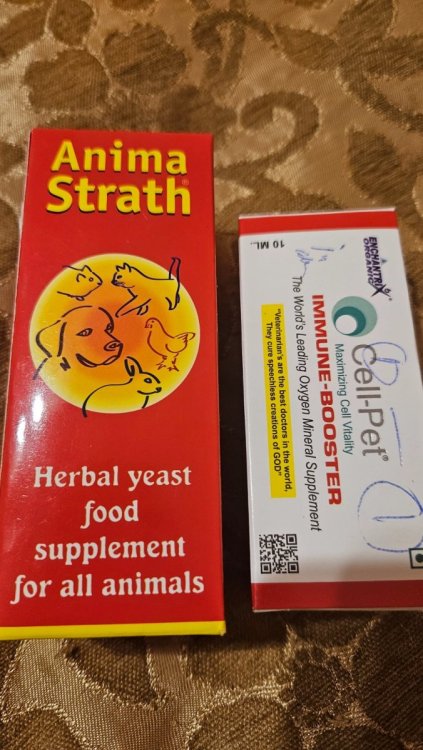 Здравствуйте! Даю ацикловир, римантадин, ещё докупил фоспренил в ветаптеке. Также крошу карсил. Он пока сам ест и пьёт, это облегчает задачу...