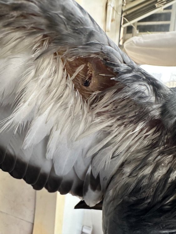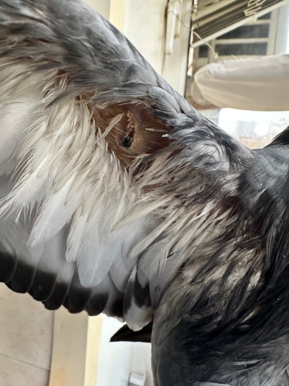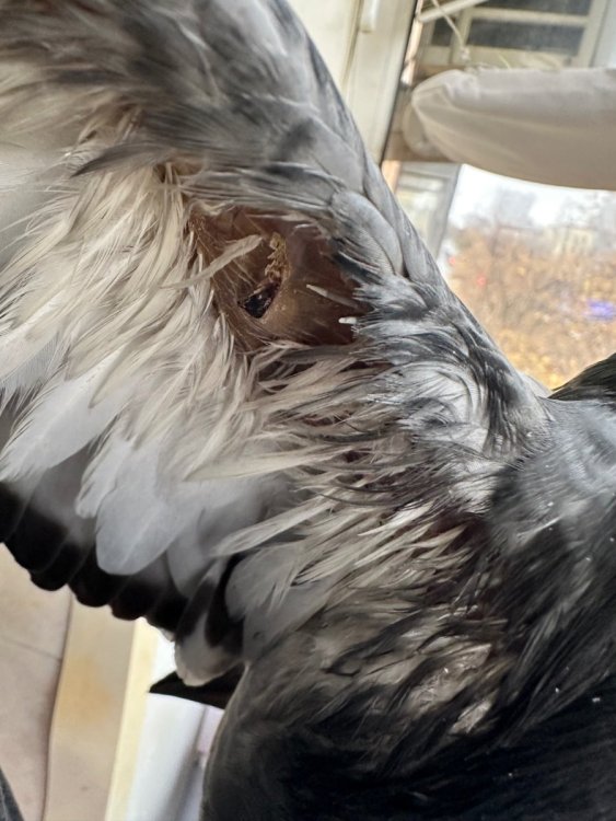 нужно СРОЧНО цефтриаксон внутримышечно и БЕЗ лидокаина колоть внутримышечно примерно вот сюда ВНИМАНИЕ в ту часть киля что ближе к попе колоть НЕЛЬЗЯ ВНИМАНИЕ при любых манипуляциях с птицей голову держать ВЫШЕ зоба чтобы случайно не захлебнулся содержимым при уколе иглу инсулинового шприца держать поближе к кости киля так чтобы если уколете не так игла упёрлась бы в кость чтобы не было синяков птицу держать так чтобы не дёрнулась при уколе для уколов лучше инсулинка с несъёмной тоненькой иглой после укола дать одну семечку без кожуры чтобы птичка не обижалась (взрослому в день не более 10 семечек чтобы не посадить печень) к антибиотику ОБЯЗАТЕЛЬНО нистатин 500.000 единиц четверть таблетки с водой через шприц без иглы в клюв дважды в день желательно за 30-40 минут до еды обрабатывать Смесью №1 в рану ОБЯЗАТЕЛЬНО доступ кислорода СОХРАНИТЬ КРЫЛО И ВНОВЬ ЛЕТАТЬ и Здоровья Вашему голубю!