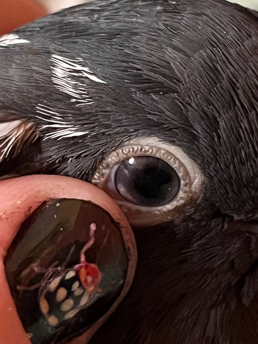 Добрый день! Возник вопрос по поводу появления светлого пятна на радужке глаза моего голубя Капы (2,5 года, немецкий крестовый монах, самец). Пятно заметила неделю назад. Голубь с гетерохромией, после «подросткового» возраста один глаз остался темным, второй побелел, как и должно быть у этой породы. При первом приеме ветеринар сказал, что это просто мутация (это было еще до появления пятна). Скажите, пожалуйста, это может быть что-то связано с патологией? Мне почему-то кажется, что радужка «запоздала» с побелением и начала светлеть уже во взрослом возрасте, а не в «подростковом». Ближайший приём к специалисту через 3 недели, но я начинаю уже беспокоиться, что могут быть какие-то проблемы. Прикрепила фото: глаз сейчас как было раньше (фото около полугода) разница между белым и темным глазом. Распишу рацион 1. Зерносмесь: вика, горох (мелко расколотый), кукуруза (мелко расколотая), пшеница, просо (красное, черное, желтое), рапс, семечки очищенные (в качестве лакомства к тренировкам, не на постоянной основе), сафлор, гречиха, ячмень, сорго, рис бурый 2. Добавки: минеральная смесь Padovan Biogrit, песок RIO, яичная скорлупа (порошок), сепия (порошок), уголь 3. Зелень, овощи, фрукты, пророщенные семена всегда даются, но ест их редко и без желания, как бы я не приманивала его, не знаю, с чем это связано. 4. Ну и естественно вода свежая, меняется каждый день. Световой день по 12 часов Заранее спасибо.