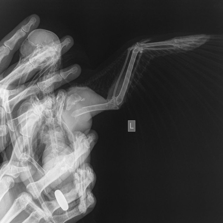 Добрый день, друзья. Вчера подобрали грачика со сломанным крылом. Сделали сразу рентген, правда в одной проекции, но ладно хоть нашли кто вообще согласился рентгенить птицу. Во многих клиниках отказ. Чувствует себя хорошо, помет жёлтый иногда белый и чуть с зеленцой. Ест творог, яйца, перловку, гречу, рис, полюбился ему виноград, также ел рябину, клюкву, семечки, орехи. Но вот мясо не ест. Совсем, ни вареное ни сырое. Тощий, киль торчит, но оперение шикарное. Крыло сломано в плечк, висит. Подрезали оперение. Прыгает, сидит на присаде. Спокойный, не кусается (в отличии от вороны). Вопросов много. У нас ещё живёт голубь. Есть ли опасность чем нибудь от грача ему заразиться? Нужны ли какие антибиотики грачу? Плечо опухшее, словно нарост, ран нет совсем, все сухо и чисто. Как быть с крылом? Подвязывать не получается, сам не подтягивает его. Оно ему мешает и задевает за все. Нужно ли в будущем ампутировать? Или как приучить к подвязывания. Грач спокойный очень, на удивление. Даёт гладить и чесать. Купался спокойно. Чуть чуть прикусывает, но больше из любопытства. Сейчас взвешу его. Модераторов просьба перенаправить тему в нужный раздел, если не правильно разместила.