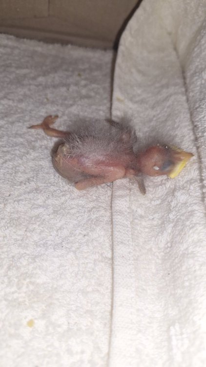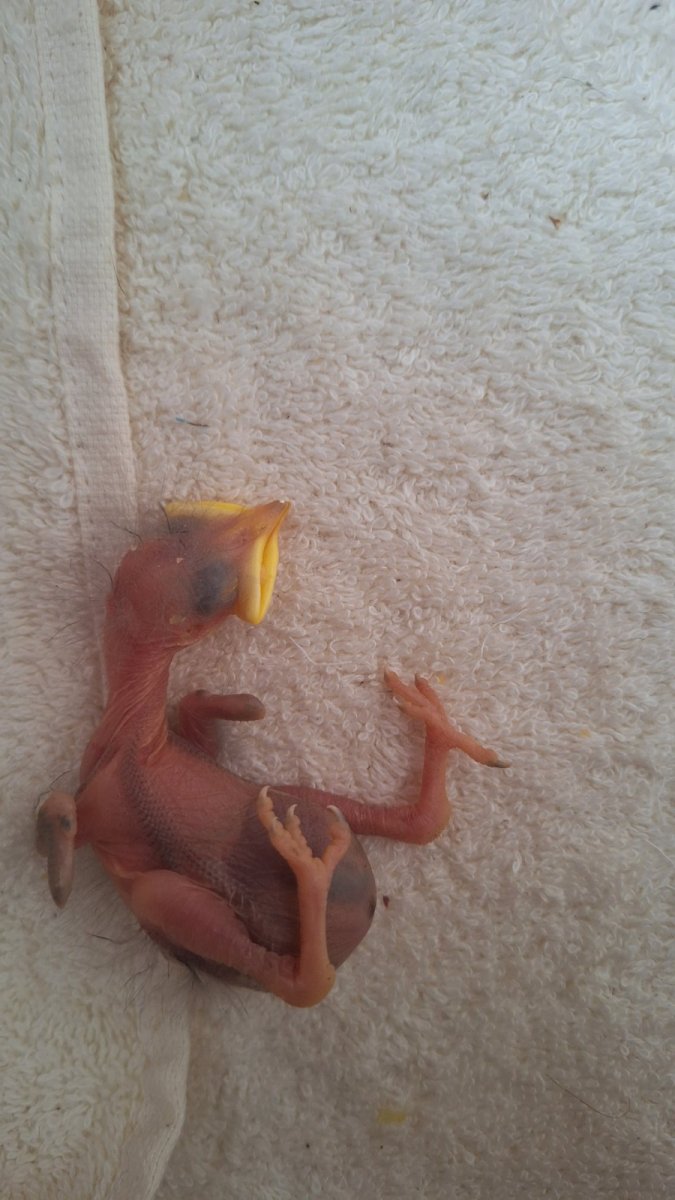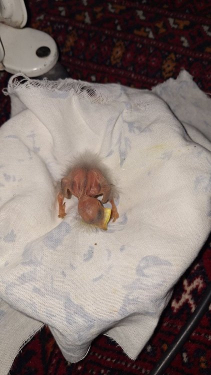 Здравствуйте. Нужен совет по найденному птенцу. Недавно ночью я нашёл очень маленького птенца на бетонном тротуаре. Он лежал один, гнезда рядом видно не было, поэтому я забрал его домой, чтобы не оставить на дороге. Рано утром я вернулся на место находки и попытался найти гнездо, но так и не смог. После этого я соорудил искусственное гнездо из коробки и закрепил его на дереве рядом с местом обнаружения птенца. Наблюдал издалека около 2 часов, но родители так и не появились. На улице было около 17°C, и за это время птенец сильно ослаб и переохладился, поэтому я снова забрал его домой. Сейчас ухаживаю за ним самостоятельно. Что уже наблюдал/делал: Птенец очень молодой: почти без перьев, только немного пуха. Глаза были закрыты, сам стоять нормально не мог. Постоянно пищит, особенно реагирует на шум и движение. Кормлю его маленькими порциями регулярно. Сначала кормил варёным яйцом, позже перешёл на влажный кошачий корм/высокобелковую пищу как временную меру. Помёт регулярный, без крови и резкого запаха. Птенец активный, просит еду, реагирует на прикосновение. Иногда пытается вставать на ноги. Есть проблема с одной лапой: Птенец постоянно поджимает одну ногу. Почти не двигает ею самостоятельно. Частично наступает, но явно щадит. Цвет и температура лапы нормальные, не холоднее второй. Из-за этого тело часто наклонено в одну сторону. Также периодически замечал: При дыхании/писке иногда слышно приглушённое щёлканье/потрескивание. Иногда заметны движения телом/хвостом при дыхании, но клюв обычно закрыт. Я нахожусь в стране, где доступа к специалисту по диким птицам/ветеринару по птицам практически нет, поэтому пытаюсь делать всё возможное дома. Буду благодарен за любые советы: Насколько это похоже на серьёзную травму лапы? Что ещё можно улучшить в уходе/кормлении? Есть ли шанс, что лапа восстановится при покое? Насколько тревожны дыхательные щелчки/движения телом? Спасибо всем, кто откликнется.
