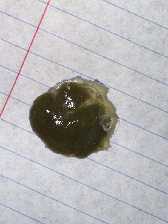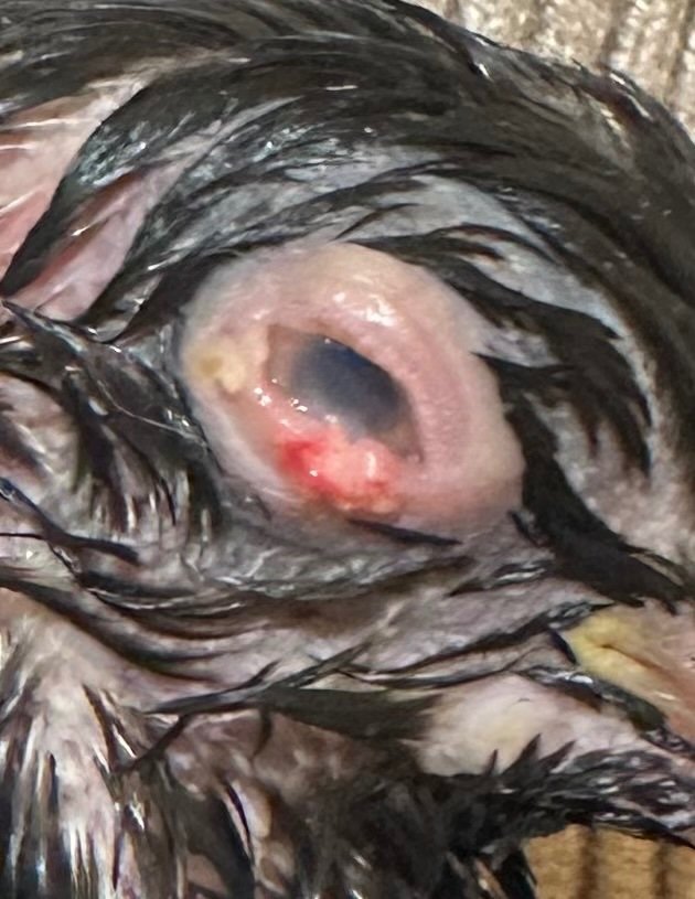 То что отпало он проглотил. А место под клювом справа где нарост первый был, но тот был большущий. Зеленкой намазано, тут была еще выпуклость. Первый отпал, а эта шишка оставалась. Видимо недолеченный трихомоноз прятался. И из этого места снова пророс нарост но меньше. Теперь этой выпуклости нет. Всё пропало.