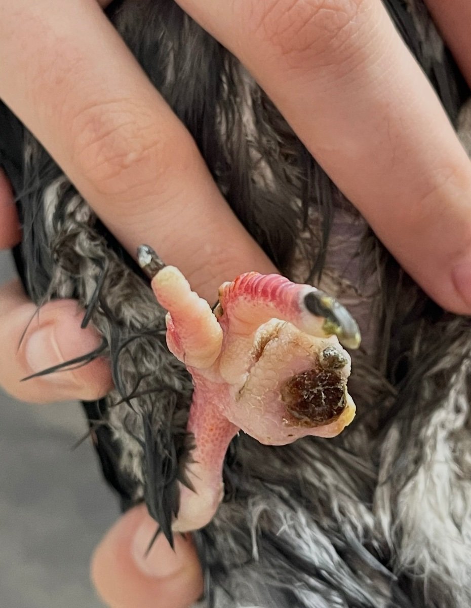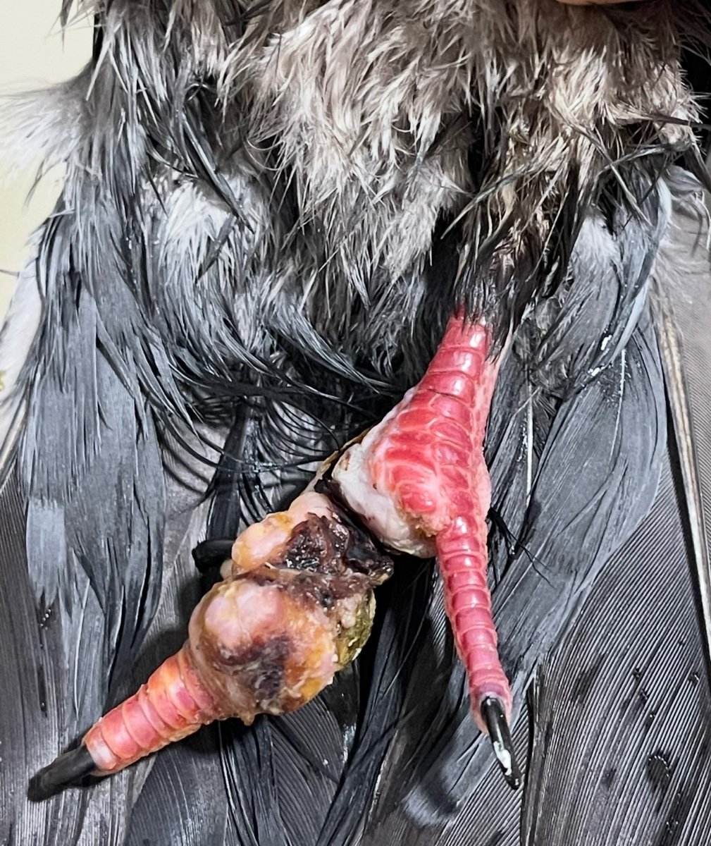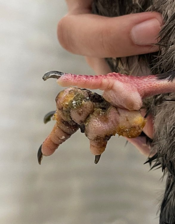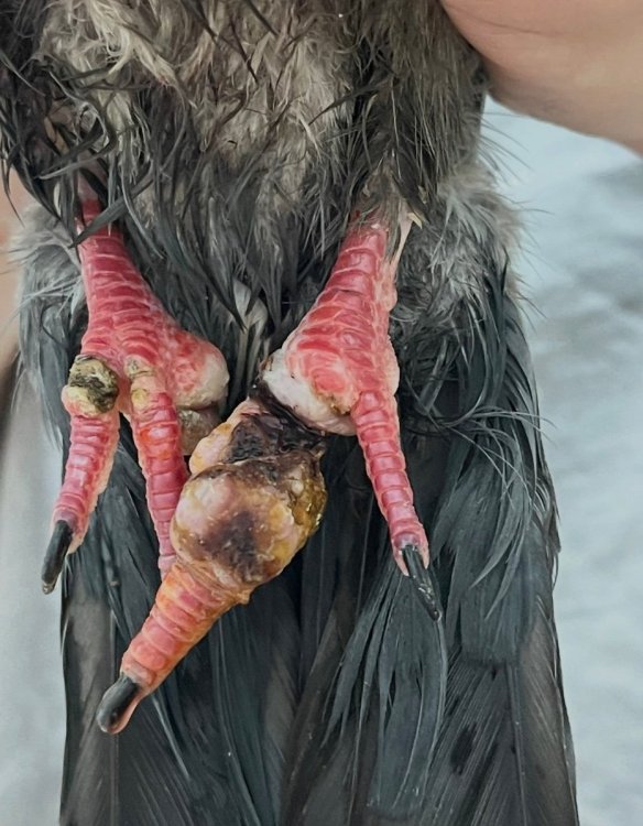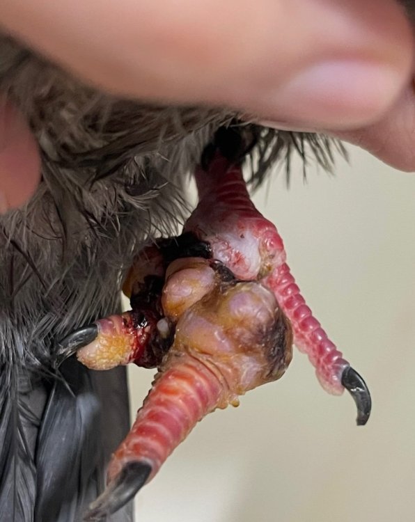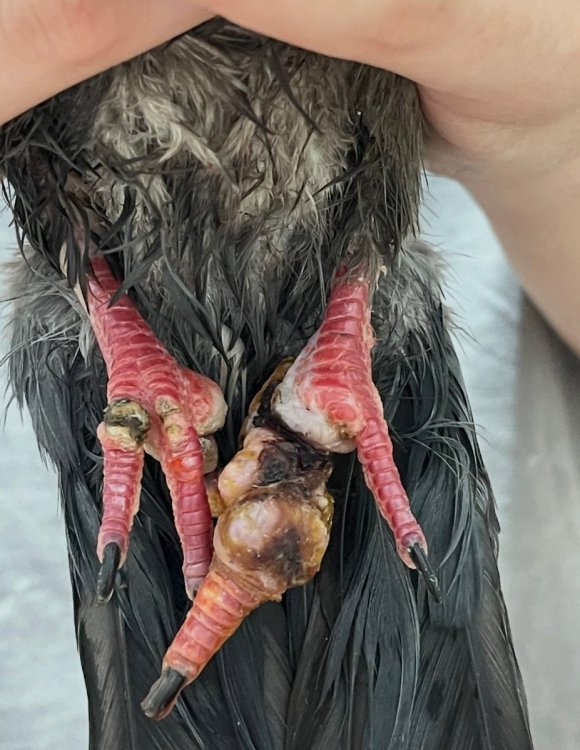 Нитки на лапках у голубя, сильная припухлость лапок