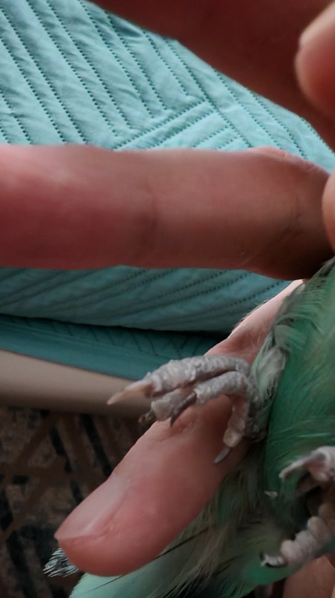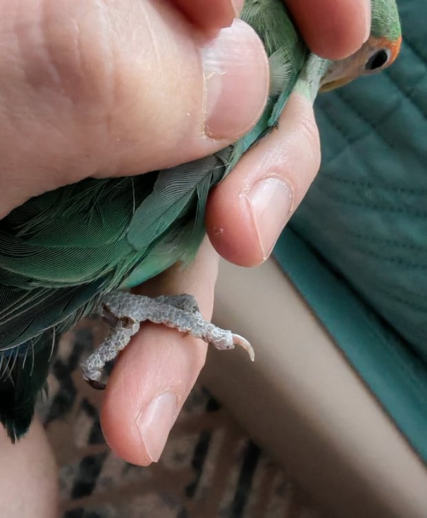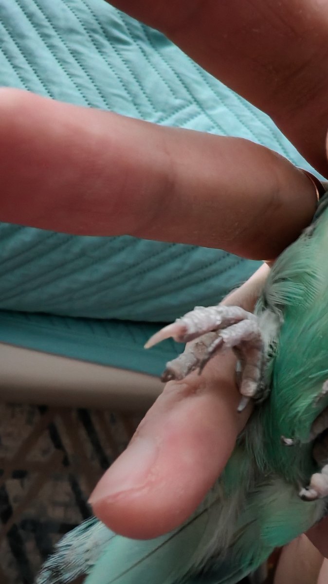 Здравствуйте. Подскажите пожалуйста что может быть с пальчиком на правой лапке у мальчика неразлучника?! Ноготь белый в отличии от остальных. Не захватывает полностью нашест!