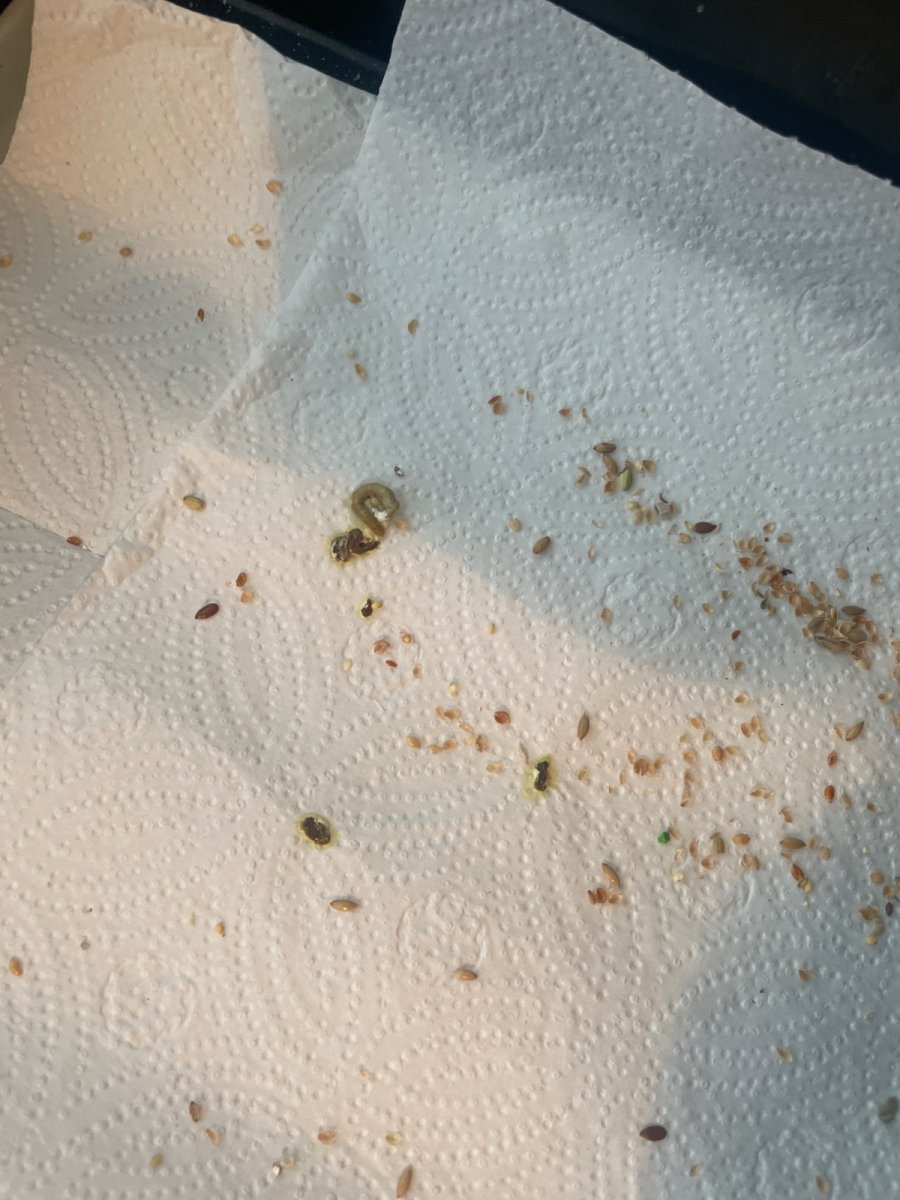 Пришла домой. Птица сидит напуганная и судя по помету сидит так долго, дети по потолку бегают может их испугалась.... Сверху живут, ща перебралась на жердрчку дёргает в такт к клюву хвостом иногда. Дрожит. Когда-то в момент отсутствия был сбой в помёте.. Вото прикрепляю, вечером нормализовался (то что при мне когда вернулась тоже прикрепляю на фото 2 @Дабб1посмотрите тему, пожалуйста. Может переставить клетку в другую комнату? Где дети меньше бегают по потолку?