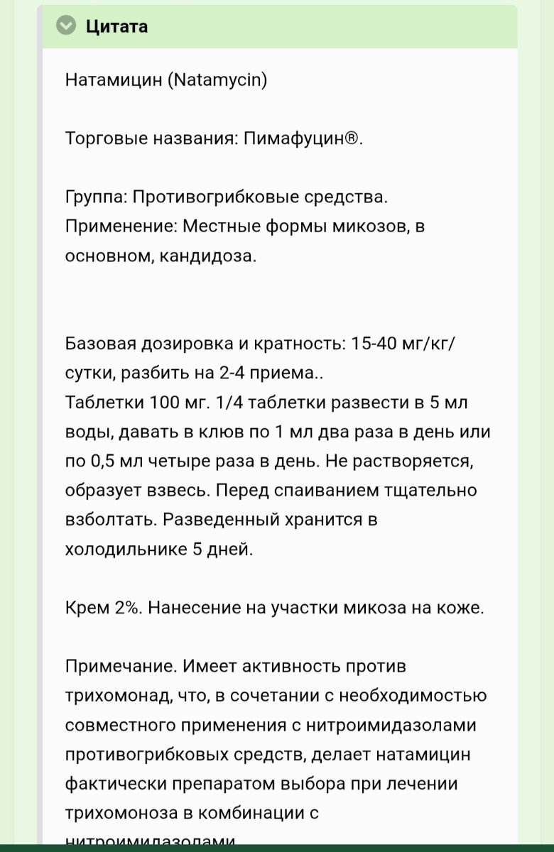9. С 3 числа. Развожу в 5 мл, 2 раза в день по 0,5. Больше не даю. Он блюет после всего. Как ему дать лекарства и еду... Он наоборот становится так и начинает блевать. Одна вода и слизь идёт Он ел спокойно зерно, оно уходило. Без проблем. Есть и 2 голубь, он без таких проблем. Но теперь беспокоюсь о нем тоже. Дала нистатин сейчас. Тут же выблевал. Пимафуцин и витамины в сегодня не давала, пока боюсь давать. Мне страшно за него