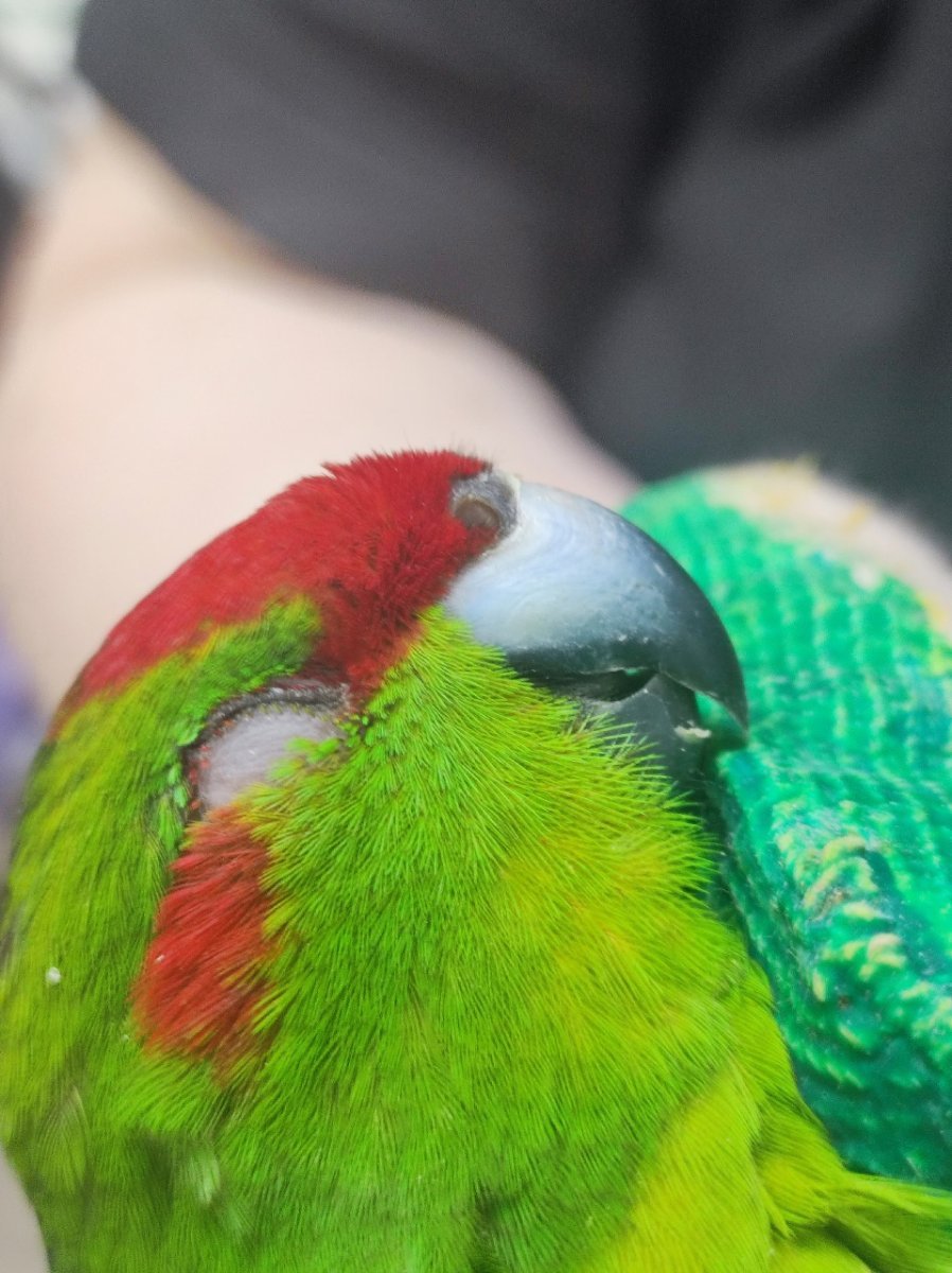 Месяц какарику, три дней с закрытыми глазами ест и передвигается, киль прощупывается,корм рио. Ест мало. Сидит на жердочке все время. 8