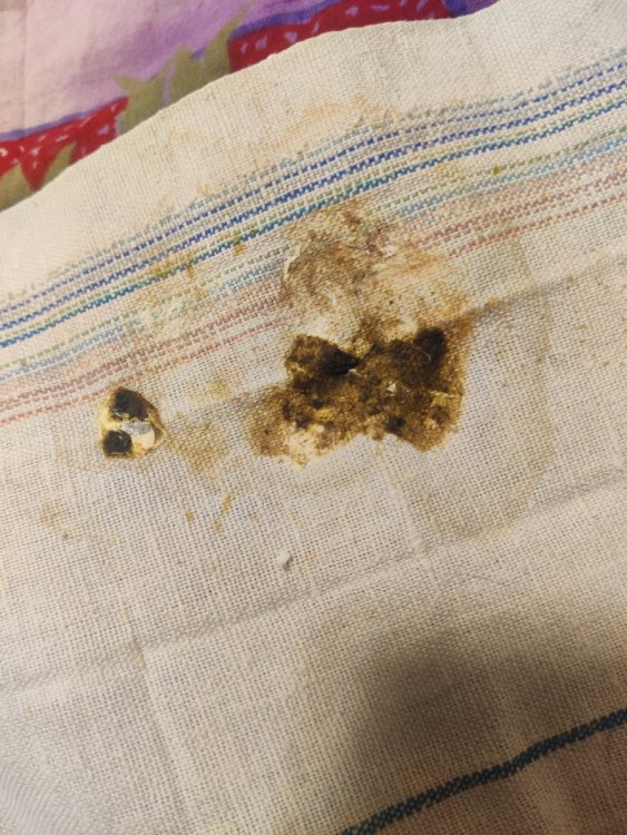 есть еще вот это но оно не будет использоваться видимо да я понял, но мне что делать когда фармацевт говорит что у них есть и то и то. я сразу у всех спросил. ну он не каменный он довольно легко мнется сейчас разминал его. пахнуло больничкой. он разминается и как будто раскрошивается? не понял пока. может показалось сейчас собирался залить туда побольше нистатина и минут через 15-30 маслица сверху. но если залить маслице оно там не застрянет ли в случае неудачной попытки? это лучше чем маслице? или можно одновременно? просто мне кажется если хорошо размять а потом еще ношпу с церукалом? то может пойти? что вы скажете про этот метод? или лучше размять но маслица не лить а закинуть ферментов? но может то что там грибы эти и не следует переваривать? а просто пропустить по кишке побыстрее? или если ферменты не сработают уже после них залить маслица? миллион вопросов в общем и как разминать насколько осторожно. не повредить бы оно почти не сохранилось но вот примерно начиналось таким а дальше пошло вот такое такие маленькие но их не очень много было. и они закончились пока что. часа 2 назад ..... ах да и сколько делать ферментов тогда? вот я фото прислал я когда со своим животом мучился многократно слышал мнение что эти ферменты вообще никакой роли не играют и просто не работают. сам я не знаю че думать