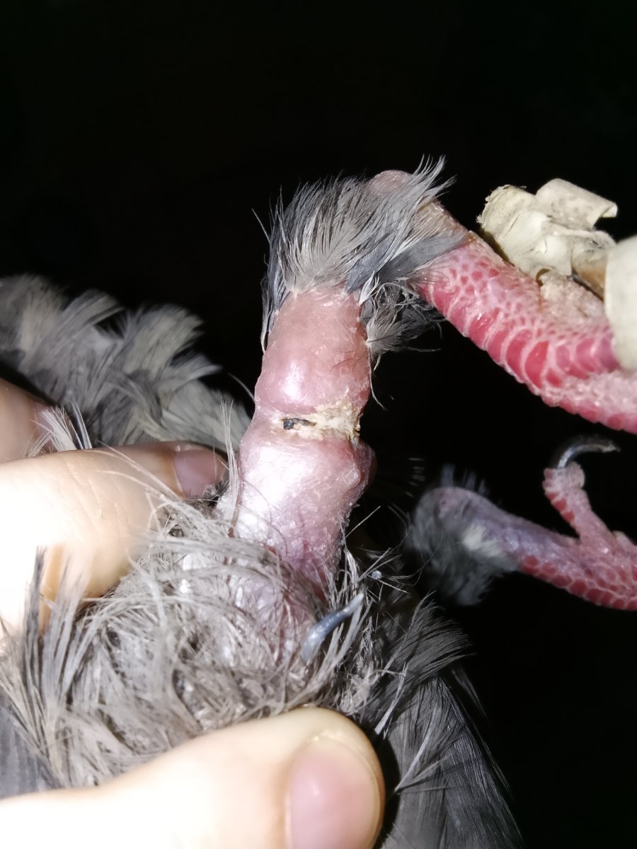 25. ИМХО, если птица хоть как-то лапой пользуется, то хорошие. Лапы для голубя не так важны как крылья. Даже если он будет хромать, у него все будет нормально. Если кости уже схватились (а скорее всего так и есть - прошло уже 2 недели), я бы просто дал ему восстановиться нормально - недели за 3-4 там уже довольно крепко кости соединяются. Для примера - у меня сейчас голубь, которого я летом со сломанной бедренной костью подобрал - тоже операцию не делал, примерно соединил в правильном положении и наложил шину. Там 100% не идеально все срослось (я ренген делал, чтобы посмотреть) - через 1-2 месяца он полностью восстановился, и сейчас не заметно, что у него вообще проблемы какие-то были. Хотя в начале так же, как и у вас, лапа была полностью парализована. Еще 1 голубь есть - у него переломано крыло было и все срослось не правильно, но он даже на криво сросшихся костях летает очень хорошо. Вот тема - там рентген есть : Поэтому, перелом лапы со смещением, тем более не в районе сустава - это не самое страшное, что могло бы с голубем произойти. Жаль, конечно, что вы в самом начале перелом на распознали - можно было бы шину наложить и добиться более правильного сращения костей, но что уж поделать. На счет операций - по моему опыту, врачи не очень любят "старые" переломы делать. И такие операции без наркоза делают - на живую. P.S. Меня на рентгене смущает только отломок кости острый, который справа, но может быть и все нормально.
