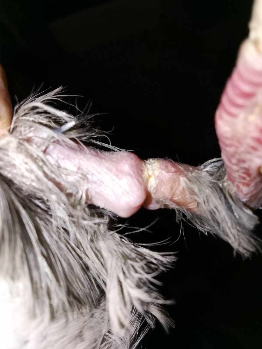 @маленький принц здравствуйте. И в этой теме тоже пишу. Вот что сейчас с лапой... Мазала Метилурацилом Как видите - там черное что-то...не кость это торчит? И шишки... Метилурацилом мажу, но не каждый день. Кровообращение восстановилось - лапки розовые(были обе потемневшие, черные пальцы).