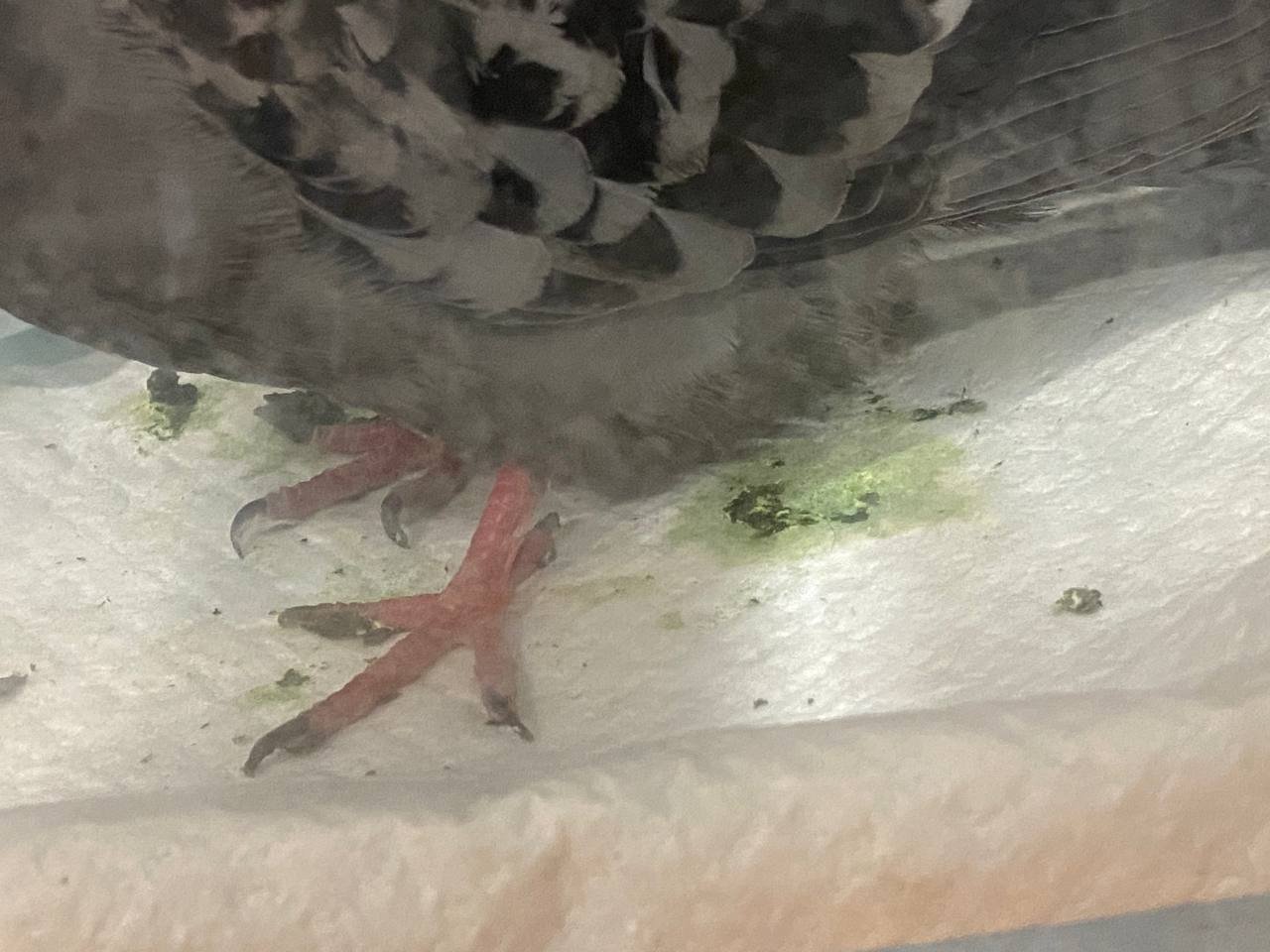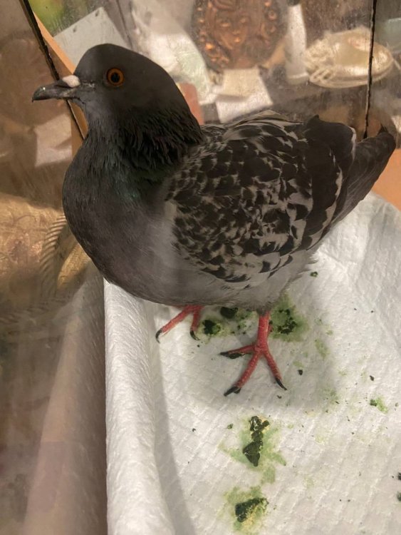 Подобрали его сегодня днем, лежал в снегу и не двигался (кроме головы), он в последний момент когда приближалась рука попытался взлететь на трубу, не вышло (пацан к успеху шел) Положили его в аквариум сухой, подложили пеленку и дали воды и зерно. Он ведет себя очень вяло, не двигается, просто стоит на месте, один раз когда я его доставал что бы поменять пеленку, он взлетел на диван, потом прилетел мне на руку и я его положил в аквариум назад, даже удивился что он так спокойно сел мне на руку. Главное что меня тревожит, это его помет, он ярко-зеленого цвета с кусочками непереваренной еды которой я ему давал (пшено, семечки) Я начитался очень много в интернете про болезни которые они могут передавать, беспокоюсь за себя и за дедушку (который как раз его и подобрал, не смог оставить в беде) ему 65 лет и боюсь не переживет какой либо инфекции. Что это может быть и как я могу определить имеет ли голубь какую то опасную болезнь без клиник? Как определить что голубь уже готов покидать дом? По внешнему виду он просто красавец(или красавица), на вид у него нет каких либо механических повреждений, крови тоже нигде нету -