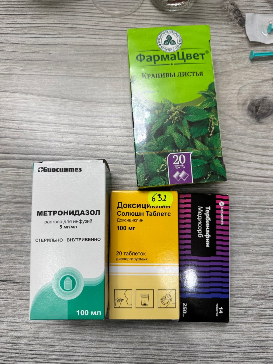 Фото рецепта там расписаны дозы Расшифруйте пжлст по доксициклину как вы даёте, я например ничего не поняла из назначения. Только, что 0,3 мл при разведении 1/2 тб в 3 мл на вес 330 гр это очень мало, даже если давать 2 р/день. По тербинафину тоже бы проверить дозировку, но его на форуме не назначают, это не препарат выбора в качестве антимикотика для голубей.
