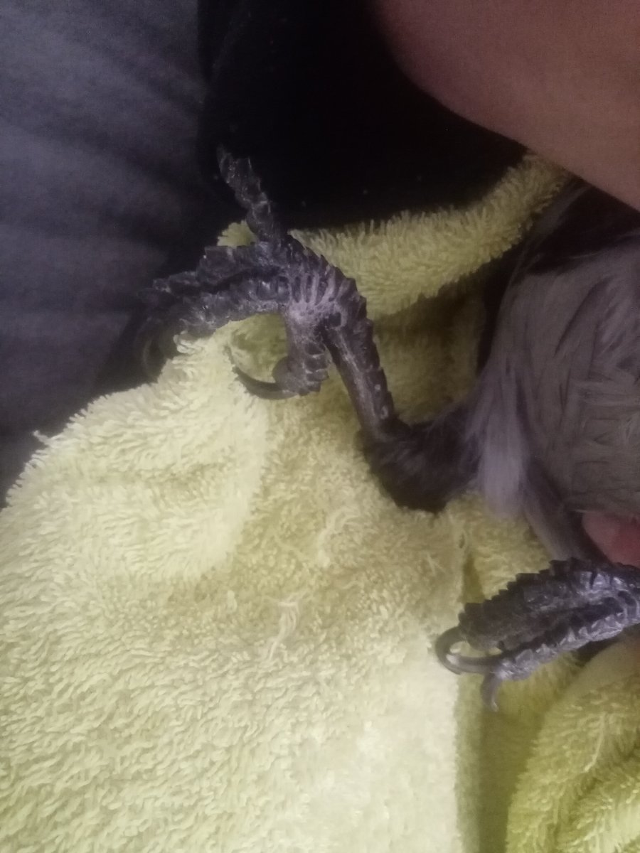 Здравствуйте, моя мама нашла маленького голубя, ему +/- 30 дней отраду. На голове видны ещё жёлтые пёрышки, буквально два дня назад, мы первый раз услышали как он пикает. Предполагается что голубь упал с высоты 3 этажного здания, со стороны соседей за стенкой балкона голуби свили гнездо. Со слов мамы она заметила бездвижное тело голубя ещё до обеда и думала что он мертвый. Но когда после часу дня она вышла на балкон и увидела что он уже был перевернут и дышал, ей стало его жалко и она принесла его домой. Постелила в ванной полотенце, дала еду и воду, держала его в темноте. Ночью я перерыла весь интернет наткнулась на ваш сайт, там я вычитала что надо давать голубям глюконат кальция. Суббота следующего дня, об бегав кучу аптек я нашла препарат. И с субботы он/она у нас получается глюконат кальция. Так же я вычитала про гамачек и как правильно осмотреть голубя, цвет его помёта, а так же правильное формирование лапок и есть ли хватательный рефлекс. Выявилось что стенки имеются под крылом, и на ноге, со стороны ( предполагаемого падение) лысые участки кожи. Лапка со стороны ( предполагаемого падения) выглядит визуально меньше, она слабее и изначально реакция была очень плоха. Лапка которая была без синяка, тоже была плохо подвижная. Хватательного рефлекса я не видела. Купила плетёную миску, что бы заниматься голубем. Спустя 7 дней я вижу, маленький прогресс когда голубь в гамачек, он пытается перебирать лапками, пока что 3 раза в подряд он это сделал. Один раз была замечен хватательный рефлекс обеими лапами, когда посадила его к себе на палец. Иногда в лапках чувствую сопротивление, как будто пытается отталкиваться. Цвет помёта зелёный с белым. Самостоятельно не есть, приходится кормить самой ( чечевица, перловка, пшеничная каша, кукурузная крупа, гречневые хлопья, семена подсолнуха, а так же в качестве белков я купила ведёрка с разными сушенными насекомыми и песок для птиц) это все измельчила и разбовляю с водой, давая слегка набухнуть и через шприц кормлю. Видела что воду пьет. Сегодня купила в аптеке суспензию Нистатина, разбавила и дала (на 5мл воды -одно нажатие суспензии) 0.25 мл набрала и дала голубю.( Так как у меня годовалый ребенок, для профилактики на всякий случай.) Я читала что вы писали от сильного удара может отнять ноги, на две недели. Незнаю изменится что то через вторую неделю или нет. Но я не понимаю почему он/она переворачивается постоянно набок или спину, приходится+100500 раз ее переворачивать, ночью тоже часто встаю контролирую все ли хорошо. Клюв я провери, соплей нет, глаза сухие, зоб не твердый, но у птицы слегка приоткрытый клюв будто дышит ртом. Но я не знаю может это связано с тем что она постоянно пытается взлететь и переворачивается, может это что то типо отдышки или стрессовый момент? Клюв в первые дни был пилочкой слегка подточен так как верхняя часть клюва чутка переросла, ногти так же были подстрижены, голубя моем каждый день так как постоянно испачкан в свой собственный помёт. Каких либо шишек, наростов нет, крыло которое пострадало, она ним двигает, но я его все равно фиксирую, так как, там была припухлость в месте синяка, но сейчас синяк не синий а жёлтый стал и припухлость спала, но не полностью. Ножка так же пожелтела там где был синяк. Переломов нигде не почувствовала. Сегодня когда замотали ей 2 крыла она не переворачивалась, сид