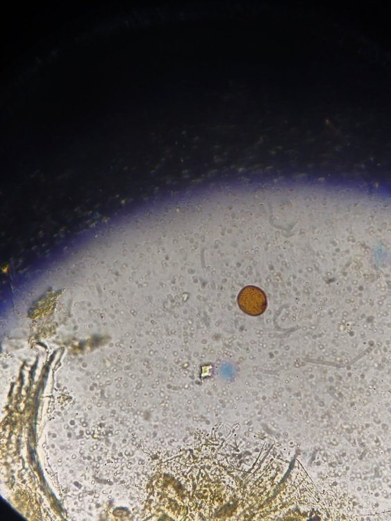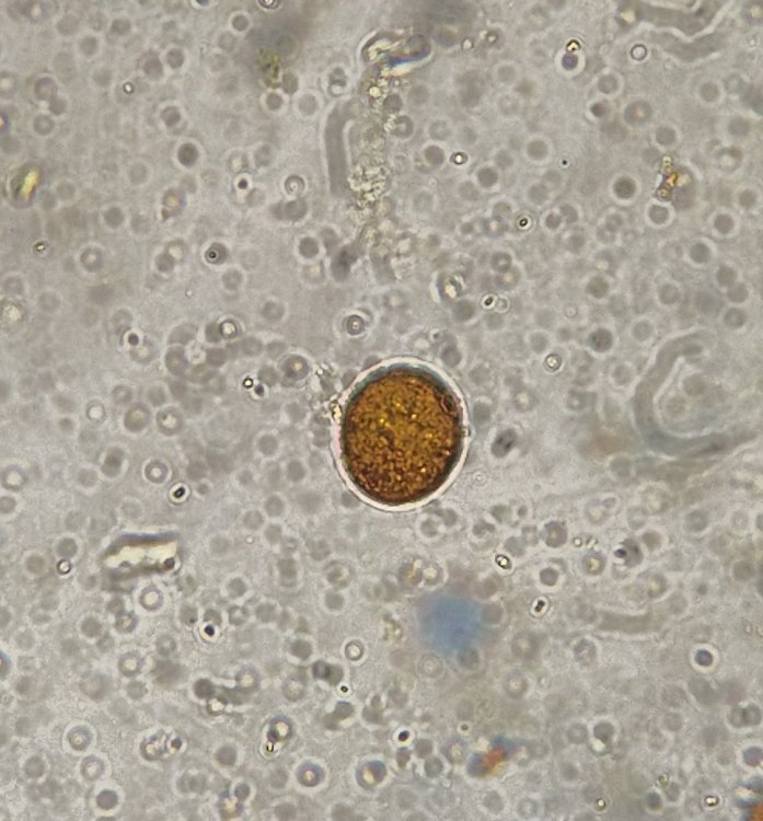 Здравствуйте. Помогите, пожалуйста, разобраться. Волнистый попугай, девочка, 3 года 5 месяцев. Лечили мегабактериоз, на вчерашней микроскопии ни одной мегабактерии, однако рвота и непереваренные зерна в помете остаются. Сделали рентген, орнитологи в замешательстве, у каждого свое отличное мнение по поводу преджелудка , печени и новообразовании в лёгких. В помете также нашли много пыльцы, однако возможно , что это глисты. Снова не понятно. Помогите , пожалуйста, разобраться с рентгеном и микроскопией. Фото прикладываю.