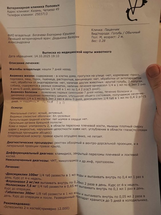 @маленький принц сделали рентген. Там два перелома и один из них с сильным смещением. Предложили остеосинтез, но у меня в данный момент вообще 0 рублей. 🤦 280 грамм весит, сердце слушали норм. Прикреплю еще выписку @маленький принц