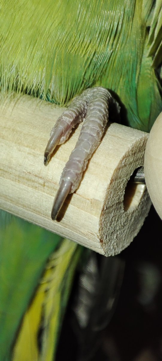 @tasibaiпосмотрите тоже тему, пожалуйста... P.s. витамины пришли (сегодня вечером она попила два раза сама, не успела сменить поилку) начну давать с завтрашнего дня 2 капли на 100 мл Кушали сегодня примерно 1 полную чайную ложку., может 1.5 - не понятно. Шелуха в корме фиори бывает и заводская, в маленьком количестве. Замечаю также иногда, что помёт прилепает к попке, но он оформленный... Это вообще очень плохо? О чем это может говорить? Одну какульку такую сняла вечером сегодея сама. Расстройств каках сегодня не было судя по оформлению всё аккуратные. Малоактивность сохраняется. Лапки слабые, часто будто не может разобраться куда нужно ими двигать, чтоб развернуться, в общем по ощущению, будто от головы до лап долго импульс доходит(при этом на второй день покупки она носилась и вниз головой висела, хотя и тогда в лапах немного путалась особенно когда прыгала или когда нужно с жердочки по прутиками спуститься часто будто лапы к этим прутикам цеплялись и она не знала как их от них отцепить , часто сильно задействует клюв при приземлениях. При свободных полётах тормозит не очень, хотя летает в принципе норм, не врезается. На верх клетки например когда приземлялась за прутья тоже тормозила будто отчасти лапами отчасти клювом, то есть такое тяжёлое приземление, а я знаю какая она худая не смотря на пушистые перья, когда я её кашей кормила, её киль в руке прощупывается. Иногда будто злится на свои лапы и начинает их грызть и ногти заодно ( при тех же полётах когда приземляется на них(но чаще при наших полётах мы бегаем по столу к монитору ), или когда прыгает с жердочки на жердочку. Сначала я списывала это на то, что она маленькая, и может пока не научилась тормозить. Потом думала может паразиты? Или вообще это нормально (ары ведь тоже грызут лапы свои) .. На вид лапы осматривала под фонариком, цвет нормальный, может суховаты только, никаких шишек/ран нигде нет, цвет вроде нормальный, но часто холодноваты, иногда холоднее чем моя рука. Когда просто бегает по столу ничего не видно, вроде всё как у всех попугаев. Лапки увлажняю по вечерам раствором ромашки из мини пульевизатора. Мне кажется что я мало всего делаю, мб нужно перенести эту тему в болезни? К орнитологу в -20 я точно не повезу, машины нет , да и в машине бы это не реально в такую погоду... Какахи мб если бы знала на что сдала. @tasibai Крупные фото лап тоже прилагаю. Сзади точно такие же -