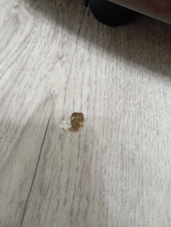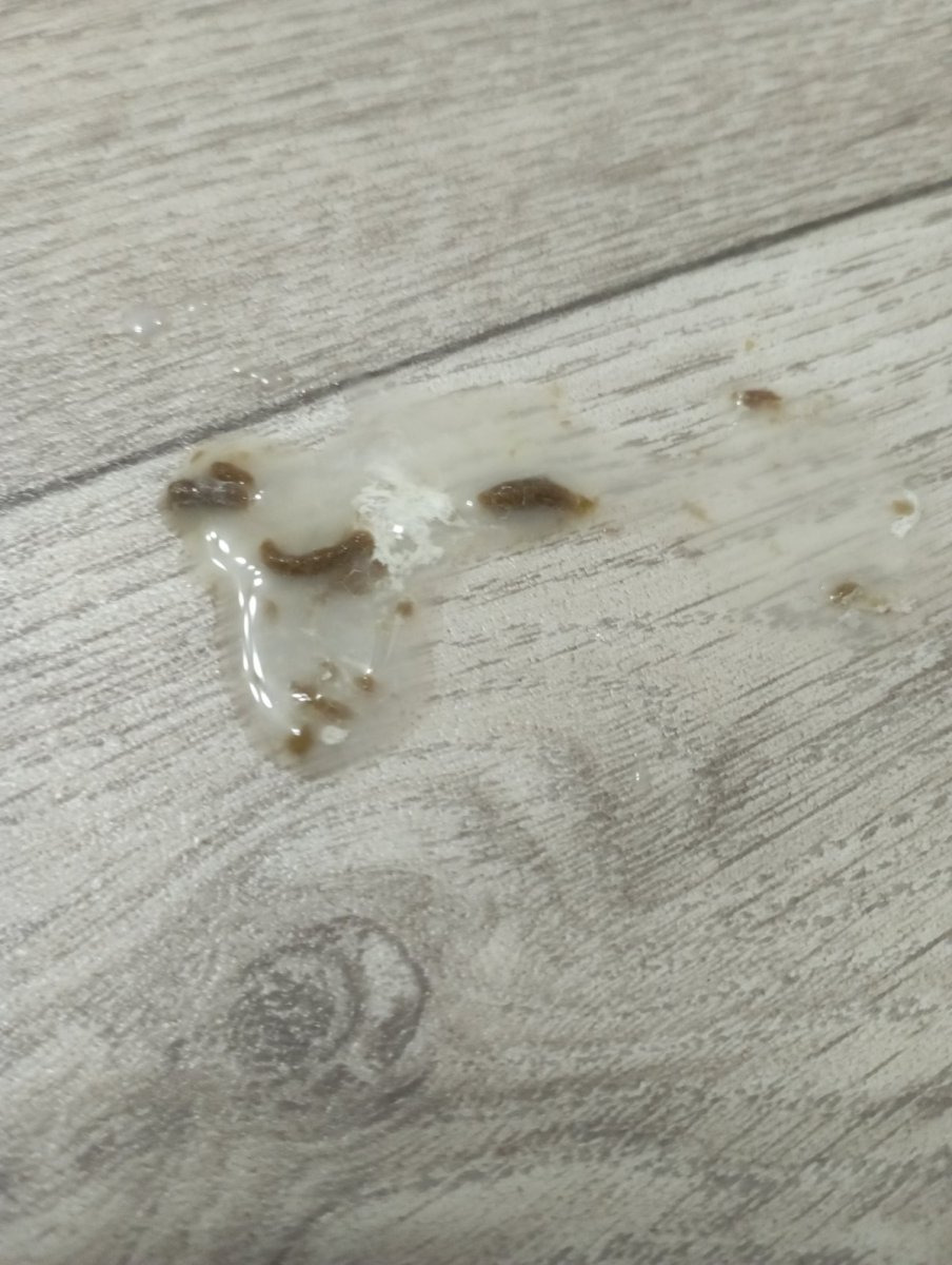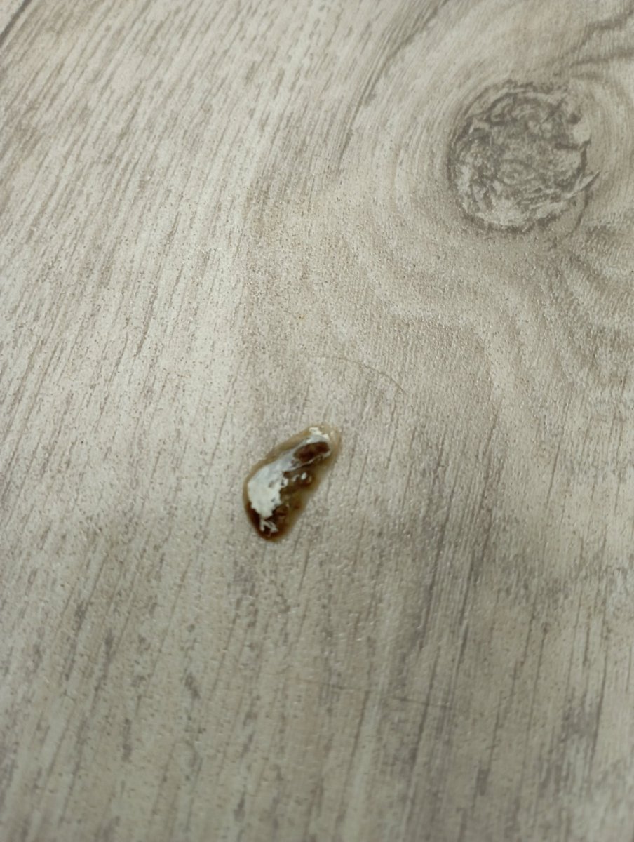 вот возможно ваша распареная пшеница и не зашла ему сразу после родительского кормления и зависла там как пробка ..а вчера возможно вы помяли ему зоб и она пошла дальше ..потому что прям смотрю одной кучей вывалилась судя по помету возможно рановато ему было такое давать резко сейчас конечно лучше подавать пастообразную пищу он возможно голодал несколько дней до вас а вы ему на радостях наваляли от души еды @Sobach Barabach