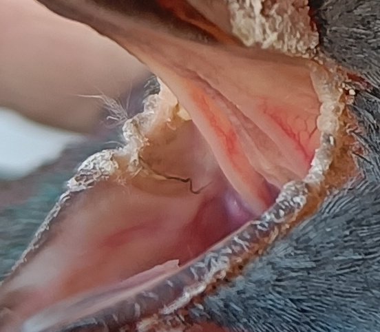 @маленький принц Я сегодня снова попробовал поснимать рот у птицы и там что-то странное. На той щеке, где провели ваткой пару дней назад теперь обозначилось что-то типа сосуда, если я не ошибаюсь. И выше небольшое образование осталось, что было. Возможно оно крупнее стало. И на противоположной щеке тоже какое-то образование. По самочувствию птицы. Лежит целыми днями. Помет частью нормальный, частью с водой. Запах у помета странный - аммиачно-туалетный, может быть даже есть что-то типа запаха печени. Мне показалось, что в некоторых пометинах присутствует что-то типа слизи. Птица предпочитает лежать или стоять в теньке - видимо ее беспокоит свет. На свою полку залетает только часам к 7. Дал птице сегодня пол капсулы Энтерола.
