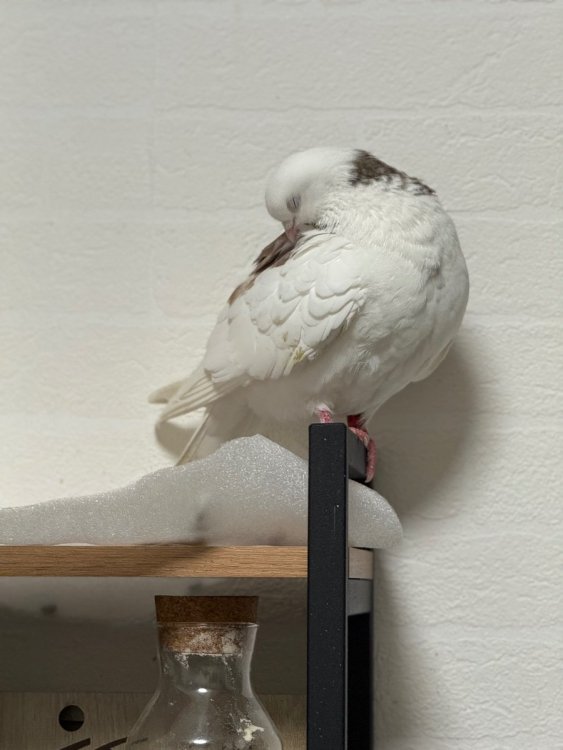 Это уже моя девочка 😅 на ночь сидит на полке, днем на подоконнике. Очень умная, я в шоке, что такие бывают, умнее некоторых людей🤣 Это все классно, но летать ей нужно и мужчина тоже. Я вряд ли смогу ей дать такие условия. Хотя я люблю животных, есть рыбки, коты. Голуби…тут минимум нужно купить гнездо, сделать домик, найти самца…я даже не знаю. 5 этах, чтоб приучить, привязь. Я не сильна в голубях 😅 -