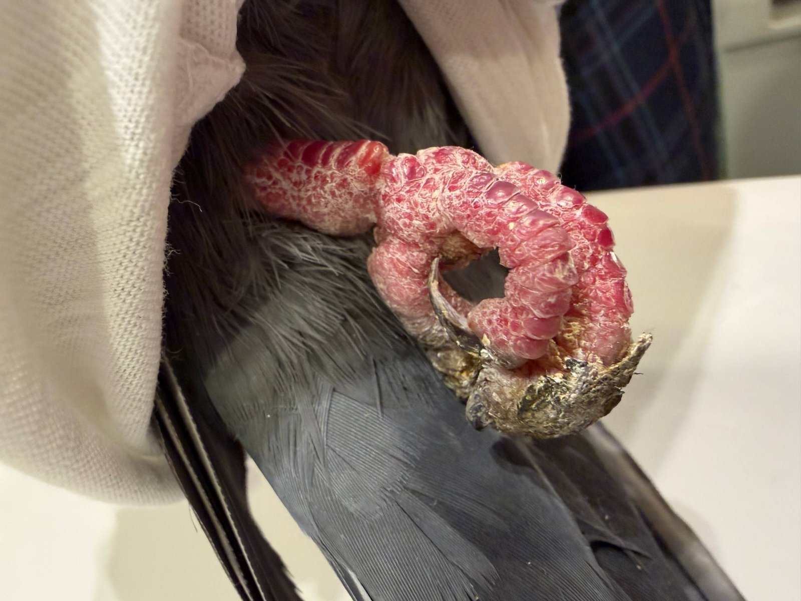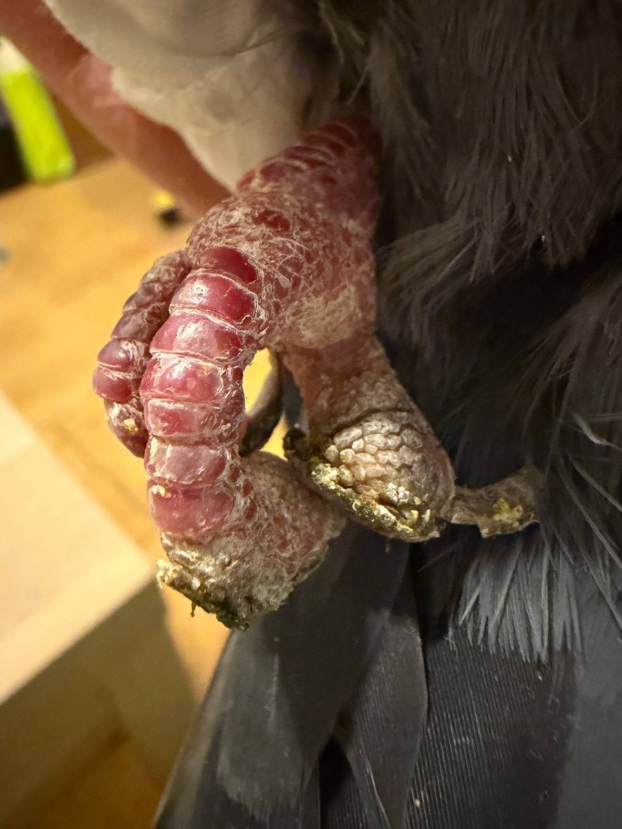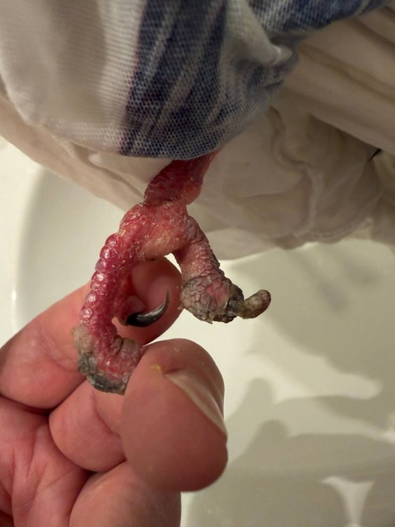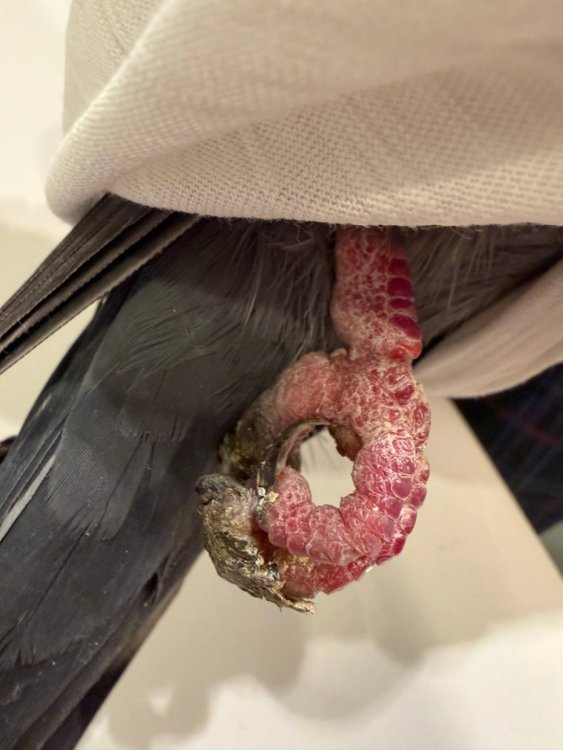 Наконец-то поймал. Может, кто сталкивался? Проблема с лапкой. Одного пальца нет, остальные пальцы находятся в сжатом положении. При ходьбе опирается на согнутые пальцы «кулак» Есть шанс сделать так, чтобы пальцы раскрылись? Вот так выглядит лапка после поимки Примерно в таком положении находится лапка при ходьбе. немного удалось отмыть лапку. Видно, что лапка пострадала от веревки, ниток или волос. Как результат, думаю, отрезало палец, повредились (передавило) сухожилии или что-то такое и поэтому плохо работают пальцы легонько попробовал разжать (выпрямить) пальцы. Вроде можно. Голубь позволил.