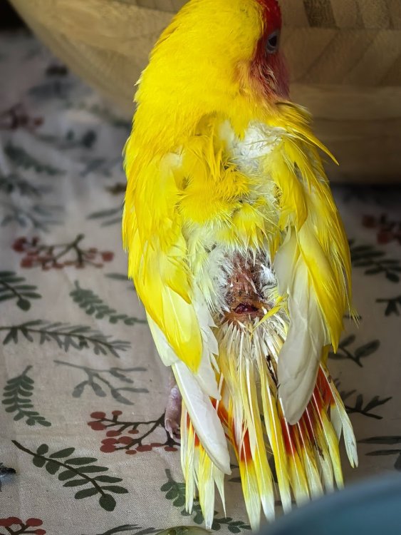 Подскажите пожалуйста, что это может быть? Фото прилагаю, попугай ест корм триол, яблоки, уже старенький около 11 лет ему, витамины начала давать 3 недели unitabs.