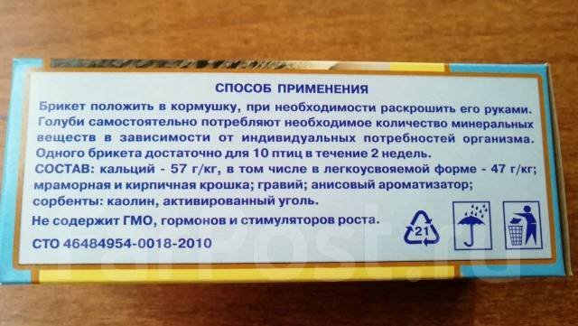 @Марина377 да собственно по сути песок и камушки одно и тоже, разная фракция только) Но можете купить в зоомагазине речной песок (кварцевый) он мельче,чем камушки. Его нужно будет промыть, проколить в духовке или на сковороде и добавлять потом в мисочку где у вас минеральная подкормка будет. Да, лучше дождаться, что скажет консультант))) Состав голубиного камня: -