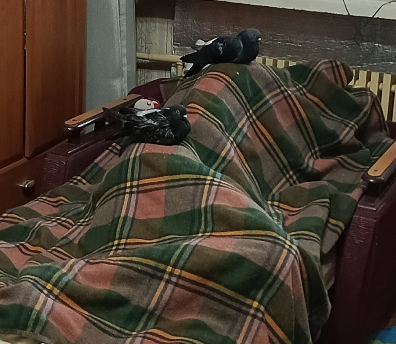 Здравствуйте друзья, забрала я снова свою голубку Курочку на том же месте под мангалом, она стала там сидеть ночами и днями, у нас настали холода 30 градусов. У неё заметила когда принесла домой вокруг глаз отсутствие перьев и она эти места чешет лапками периодически. Выделяемого из носа нет, клюв чистый. Подскажите как ее подлечить??? Ещё не смогла пройти и забрала ещё троих голубей с обожжёными крыльями и без хвостов под мангалом напишу о них в другом посте. Тоже прошу у вас помощи друзья знающие. - Вчера