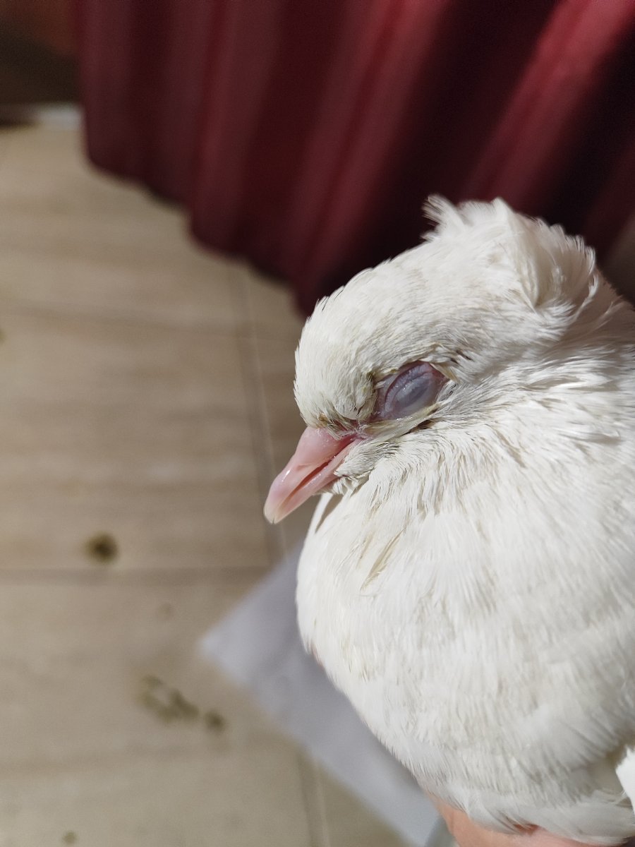 Подобрала голубя белого под мангалом там же где и курочку забрала вел себя как обычно бегал клевал зерно. Домой принесла он забился из переноски не выходит правда покушал и попил ( я разводила голубиный пребиотик) и стал сопеть и хрюкать, я поняла что то с носом. На носу есть болячка дышит им плохо приоткрывает клюв чтобы дышать, открыв клюв ничего не увидела плохого может немного слизи в глотке. Ни гноя ни крови ни соплей нет. Странно травма чтоли может голубя какой клюнул в нос. Помогите разобраться. И вылечить его пожалуйста. Не смогла загрузить видео как он дышит через клюв с сапом((( -