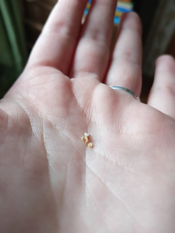Хорошо. Я положу ему на день. Но он сам совсем не клюёт. Пробовала сегодня кормить его из бутылочки, надев на горлышко резину. Во всех видео, что я смотрела, даже совсем маленькие птенчики начинают бодро есть зёрнышки и очень быстро заполняют зоб. Мой просто закрыл клюв и смотрит на меня. И ни в какую. Я и под клювом ему нажимала, чтоб он его раскрыл, и шейку ему вытягивала, и бутылочку трясла. Нет. Не есть он и все тут. Только клюв вырывать начинает и головой вертеть. Ни зёрнышка не съел. Я понимаю, что давно пора переводить его на зерно, но он никак не ест его. Я запихнула ему в клюв 15 зёрнышек перловки и 5 штучек гороха колотого. Больше у меня уже сил не хватает. Мы эти 20 зёрен ели часа 1,5 - 2. Чтоб каждое зёрнышко запихнуть, его приходится отлавливать, держать и по одному зёрнышку в клюв закладывать. А он же еще головой вертит, не каждое зерно удаётся ему в клюв положить. А даже если и удастся положить, он может клюв закрыть, но не проглотить, а выбросить потом это зерно. Так что в итоге все равно кормлю детской кашей через шприц. Я буду так же стараться задавить ему зерна, чтоб он их хоть переваривал. Но до нормального объёма все равно придётся докармливать детской кашкой. Я уже переживаю, что он совсем не научится самостоятельно есть(… @Cabrera Вот такие у нас дела с кормлением.. никакие… Принято! Ничего не добавляю. А да перловку и горох, которые давала, проварила 10мин.