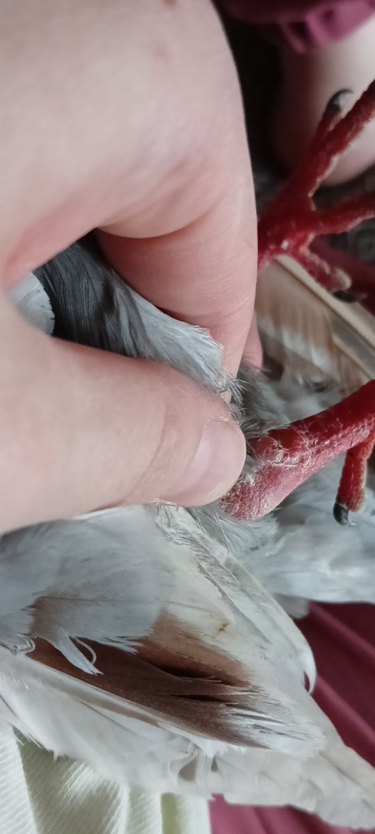 Умерла малыша с опухолью на крыле, похоронили. Опухоль была больше, чем я вначале нащупала и на "сальма-горошину" не была похожей: у неё продолговатый контур оказался, а еще она хромала. Вторую лечу от вертячки именно, антибиотики не даю, ТК слишком истощена была. С удовольствием начала клевать смесь перловки, красной чечевицы, пшеничной крупы, киноа и распаренной зеленой гречки - так свою домашнюю кормим, вроде, и этой гуле нравится. Головой дёргает иногда, когда ест, задирая ее вверх, но не заваливается на бок. Много крупы раскидывает. Начала чистить перья сегодня и подружку свою чистить пыталась😭. Весь день находится в ванной на пеленках, на ночь в маленькой переноске. Состояние явно улучшилось по сравнению с первым днем, но она сейчас в тоске, по-моему( Вот как-то так пока