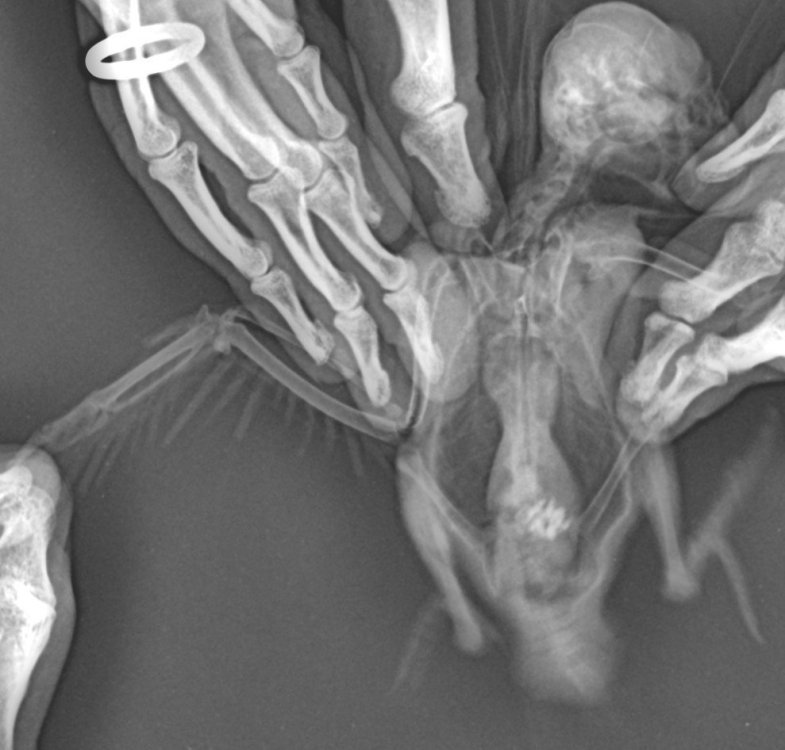 если найдёте рентген то на нём должны быть видны и внутренние органы и суставы ног