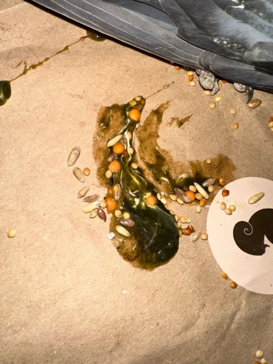 27. @Ольга_с Да, Итраконазол вчера начала давать. Насчет того усвоилось что-то или нет, не могу сказать. Например сегодня я покормила его утром, он вырвал. Снова задала немного каши и дала отдохнуть три часа. Задала Итраконазол с 1мл каши. Не вырвал. Наклоняться и головой трясти начал, но не вырвал в итоге. Через полтора часа стала кормить, он всю кашу обратно. И непонятно что он там обратно выдает. Только то, что сейчас дала или и предыдущую кашу с лекарством. Вчера еще поймала себя на мысли, что от каши, которую он вырывает, пахнет ржаным хлебом. Ну мне так показалось… Еще все хочу спросить насчет питания. Я делаю вот такую зерновую смесь. Перловка, овсяная крупа, полба, спельта, немного пшена, гречки, риса, булгура, гороха, чечевицы, смеси для попугайчиков Вака (там преимущественно просо). Ячменя еще, кажется, небольшую горсточку добавляла. Промалываю все в кофемолке, запариваю кипятком и добавляю размятый желток сваренный вкрутую. Может с питанием что-то не так? Что рожь нельзя поняла. Семечки тоже пока исключила. Может я еще что-то не то даю?