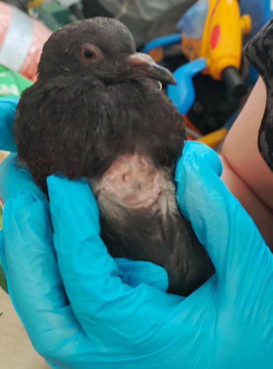 Спасибо большое за детальные ответы! Начал чуть клевать чечевицу, уже радуюсь. К сожалению за неделю у меня з просто незаметной шишки вокруг перелома травма превратилась в явный перелом. Как-будто после рентгена кость стала торчать. Вчера обстригла перья и участок вокруг раны, сегодня попыталась натянуть эластичный бинт, он вырывается, через прорезь для здорового крыла просунул и лапы, и половину тела. В результате сорвала корку с раны и кости как-будто еще больше сместились. Фото прилагаю. Может так сложно, потому что это вяхирь, они дикие? Может есть инструктаж по процессу одевания эластичного бинта? У меня бинт номер 5, птица размером со взрослого сизаря. Еще вопрос: на застекленном балконе на ночь можно оставлять в клетке? Сейчас за окном плюс 5 у нас, обещают заморозки. Я читала, что вяхири перелетные, значит теплолюбивые. Извините за такое кол-во вопросов. Зосе информацию по препаратам кальция пришлю. Вообще как лучше, писать вопросы сюда или в личку? Неудобно беспокоить, и это вообще мой первый в жизни форум.:)
