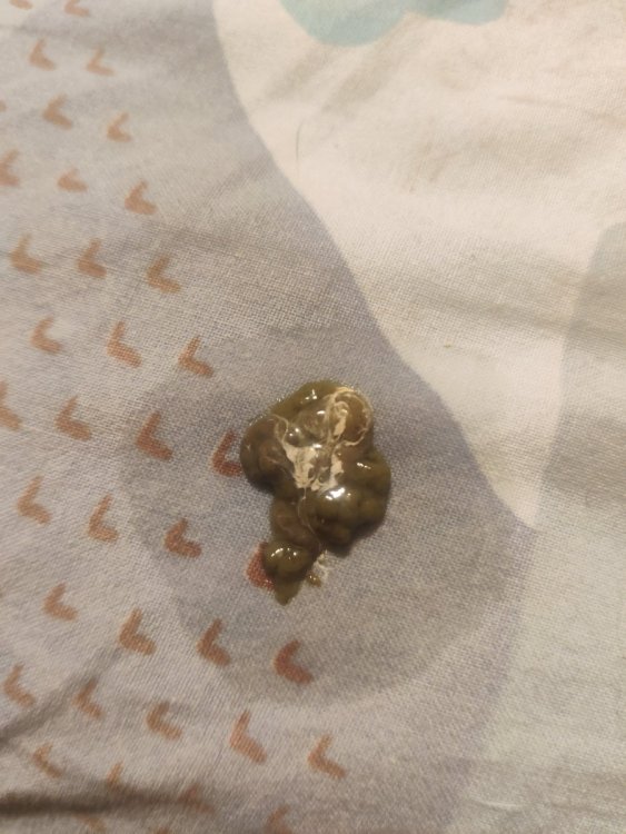 Такой сгусток утром отрыгнул. Сейчас даю Нистатин, карсил, Бифидумбактерин. Если этот кусочек растереть, он по консистенции как пюре. Что это?