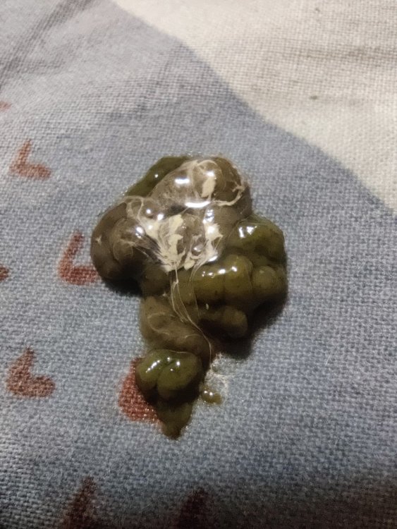 Нет вроде вмятин нет. Скажите, а Мезим можно дать? Уже Флуконазол не даю и метронидазол тоже. Давала всего один раз. Весит 218 г. Сейчас помет выглядит так: