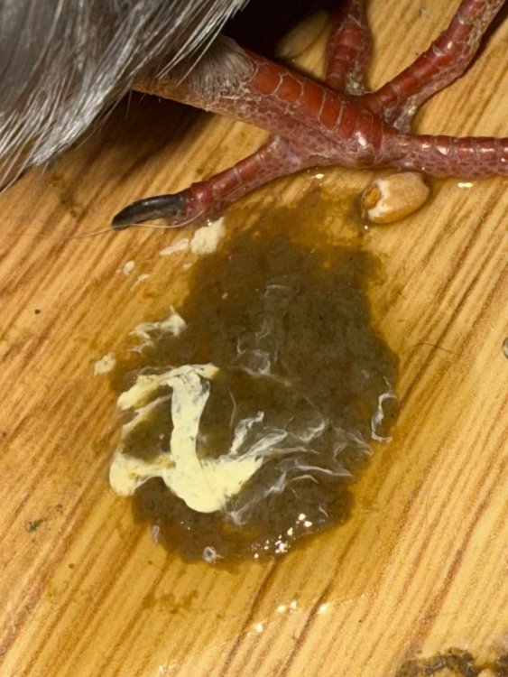 Добрый день Волнистый попугайчик Девочка Возраст лет 7 или больше Корм - RIO Вода бутылированная Минеральный камень есть в клетке Клетка просторная Раньше был чесоточный клещ, но похоже удалось вылечить. Проблема в том, что недели 2 назад отказала одна лапка. Также как будто чуть припухла (но может показалось). Начал мазать травмагелем. Через 2 дня лапка как будто подсохла, но двигать ей птичка совсем перестала. Поэтому прекратил травмагель. Прочитал, что это может быть из-за нарушения кровообращения и|или зажатия нервов по каким-то причинам... Обследовать полноценно нет возможности. Помет в общем и целом норм (фото). Оборудовал полочку, на которой днем птице вполне удобно. Освоилась. Беспокойств не замечал. Ночью все же перебирается на жердочку по привычке... Но сегодня застал момент, как птичка чуть попискивала и крутила вокруг лапы клювом. Что можно сделать, чтобы лапка (та, что ближе на фото) сохранялась в норме и птицу не беспокоила? Надо ли давать кальций, карсил как общая поддержка? @Zosia