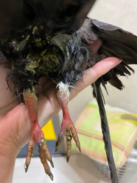 Добрый день! Подобрали голубя, не встает на лапки, у нас в городе нет орнитолога, ветеринар не может точно сказать что с птицей. Помет зеленого цвета, кушает хорошо, перья блестят, очень активный.