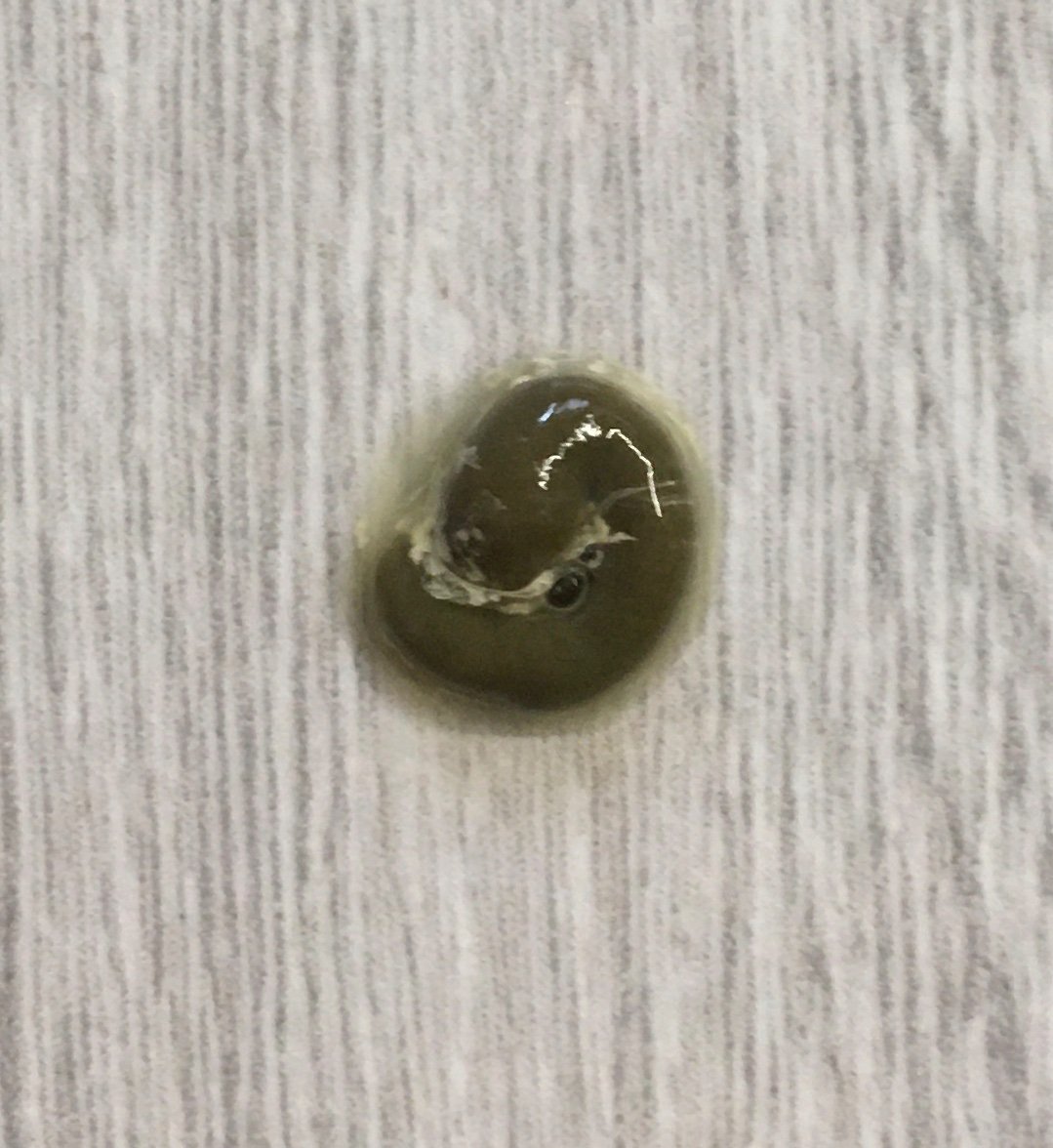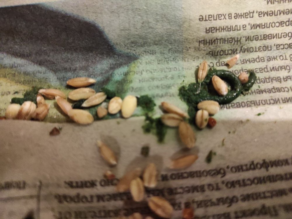 Утром я скормила ему 25мл гречневой каши. Дождалась пока освободится зоб. Это заняло где-то пять часов. Задала 20мл мультизерновой каши. Пока только эти детские кашки делаю. Как ободрите ввод чего-то нового, так добавлю. Дала 20мл больше просто не успевала. Самой надо было в больницу бежать. Прошло ещё около пяти часов, я задала ещё 25мл мультизерновой кашки. Планировала вечером сейчас ещё ему дать 15-20мл каши. По прошествии четырёх часов зоб ещё не освободился. Жду. Прошло пять часов. Зоб все равно не до конца пустой. Подождала ещё минут 40. Зоб почти пустой. Но время уже поздно. Понимаю, что ему спать пора. А объём я ему небольшой дала. Относительно того, что советуют. Начала кормить. Дала 5мл. Он убежал. Стал убегать и прятаться. Смотрю, а его рвёт. Саму рану я заметила сегодня и сразу написала. А лапу он позавчера уже не тянул. Относительно того хромал ли он вчера. Точно сказать не могу. Потому что по полу он особо не бегал. А сегодня я увидела рану, и он сегодня по полу бегал немного (я сейчас напишу про активность) и именно по звуку по полу, я обратила внимание, что он такой неравномерный. Слышно, что прихрамывает. Сидит на двух лапах. И вот, что крыло одно отставлял и подрагивал, оно с той же стороны. Может это и не связано, но решила сообщить. Насчёт того сколько вырвал. Впринципе я основное все сфоткала. Только мелкие капли не сфотографировала.