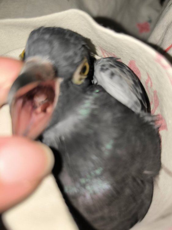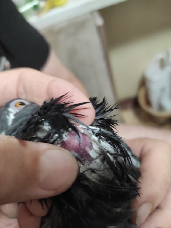 Добрый вечер. Простите, долго не отвечала: в одиночку трудно делать мало-мальски информативное фото, тем более что и камера сильно так себе, а Кузя вертится как водяной чёрт. Но кое-что после многократных попыток получилось. Надеюсь, это поможет Кузе. Он потерял в весе 25 граммов, хотя от еды не отказывается. Весил 276, сейчас 251. Дышит тяжело, хрипит. Я попробовала вернуться к тилозину, но птиц после перорального введения начинает кашлять, из клюва вылетает несколько зёрен. Хотя после него дыхание заметно улучшилось, через несколько дней вернулись к прежнему состоянию, поэтому курс прекратила. Незадолго до появления кашля у Кузи высыпалось огромное количество мелких перьев, часть крупных. Я не беспокоилась, потому что он был весь в трубочках, как дикобраз. Решила, что это линька. Но сейчас в клетке на полу нахожу большие нераскрытые трубки. Не то вырывает, не то сами выпадают. Сегодня у ноздри обнаружила желтовато-коричневатое образование, небольшой нарост. Это не засохшие выделения, что-то другое, потому что не поддалось, когда я попробовала это слегка поскрести. Отрывать побоялась. На фотографии с подсветкой не так заметно, что зев очень красный (камера не передаёт реальный оттенок), трахейное отверстие очень сильно расширено, по краям припухло, как валик. И само горло припухшее, словно у Кузи ангина. Никаких шишек не обнаружила (с трихомонозом встречалась, но, кажется, тут что-то другое). Зоб с зерном, но при этом словно слегка надут, при массировании появляется легкое бульканье в горле. Помёт то нормальный, то скудный, то вообще водой оправляется. Если это имеет значение, он начал ворковать в последние дни. И кусаться, когда я меняю подстилку. Причём очень больно. Пытается выдрать из меня куски мяса, наверное. Если просто меняю корм и воду, беру в руки, что-то поправляю, ведёт себя прилично. Возможно, гормональный всплеск усугубил ситуацию. И ещё раз благодарю за помощь.