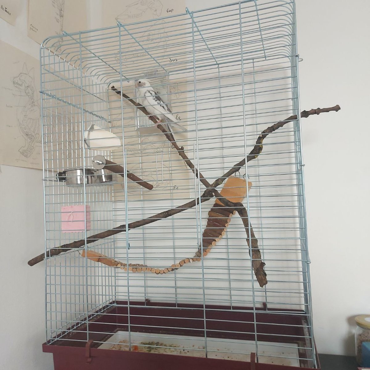 Здравствуйте, 4 дня назад взяли молоденького попугайчика (сказали, что из гнезда вылетел в августе, так что, полагаю, ему около 3,5-4 месяцев?) из уличного вольера, назвали Ви. Совсем не ручной, кое-как сачком поймали и в переноску. Сейчас уже нормализовался стул, аппетит радует, по вечерам довольно скрипит клювом, но рук боится, когда меняю еду и воду начинает по клетке летать, хотя стараюсь всё аккуратно делать. Исходя из этого, первый вопрос, сколько времени может занимать адаптация и как вообще правильно приучать к рукам? Второй вопрос касательно пола. Знаю, что определяют по поведению и голосу. Пока птичка издает только один "квирк" разной громкости, никаких песен не слышно, что вроде как признак самочки. При этом любимое место в клетке у зеркала, очень любит у него крутиться, и стучит клювом по своему отражению, а ещё активно кричит по утрам, встречая новый день, да и вообще довольно крикливая птичка - это, говорят, признаки самца. Так кто же всё таки? Теперь расскажу о условиях содержания. Обустройство клетки видно на фото, знаю, что недостаточно игрушек, всякие качельки и колокольчики уже заказаны и в пути. Клетка стоит на столе, плюс минус на уровне глаз. На дне клетки специальный песочек из зоомагазина, пока не видела, чтоб он(а) его ела, да и вообще на дно особо не спускается, если падает, то сразу обратно наверх. Комната средней освещенности, окна восточные, клетка стоит у стены напротив окна (но потолок скошенный, и окна тоже, так что прямые солнечные лучи не доходят). В клетке минеральный камень (ни разу не тронутый) и сепия (вот её грызет только так). Корм меняю утром, как только просыпается и начинает свой утренний концерт: две столовые ложки versele-laga prestige big parakeets + несколько капель мультивитаминной добавки Beaphar Mausertropfen + щепотку песка (не того, который на дне клетки, другого, чуть более крупного - смесь раковин, устриц, мелких камней, мидий, красных камней и древесного угля для пищеварения). Воду по нескольку раз в день меняю, если вижу, что загрязнена. Есть ли какие-то ещё советы и рекомендации по содержанию? Вроде как нам скоро ждать первую линьку, как можно поддержать птичку в этот период? Ещё хотела спросить по поводу специальной лампы для птиц - нужна ли? Если да то какая, как выбрать и куда её вешать? Заранее спасибо!- 26 ответов