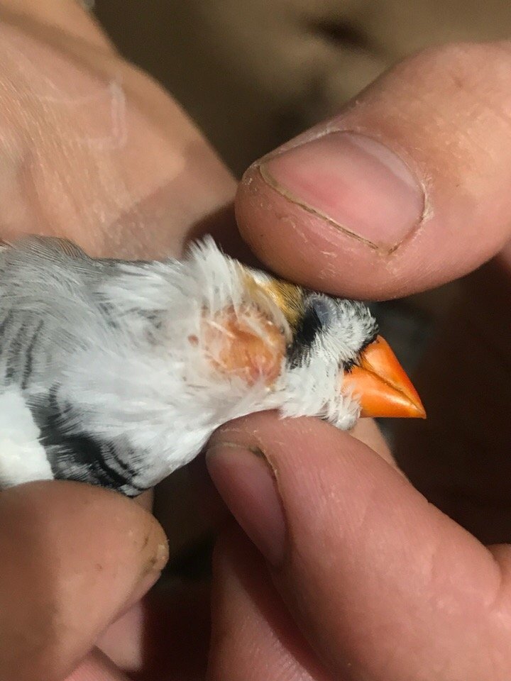 Лысый затылок у зебрового амадина. Лопнула кожа??