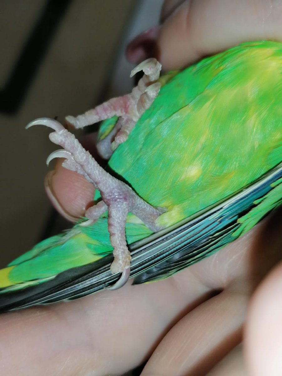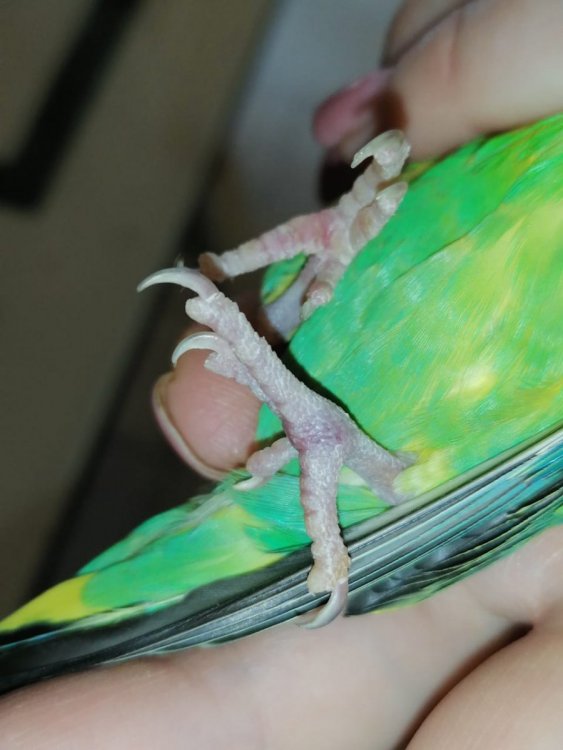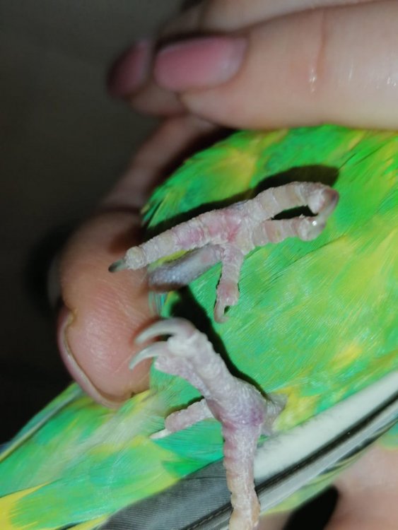 У попугая что то случилось с лапкой. Все было нормально, вдруг стали замечать что он плохо держит равновесие и стал реже выходить из клетки. Увидели у него на лапке это(смотреть вложение). на лапку не опирается. Сидит на ветке вертикально вниз головой, ночью во время сна падает... Что с ним? Помогите
